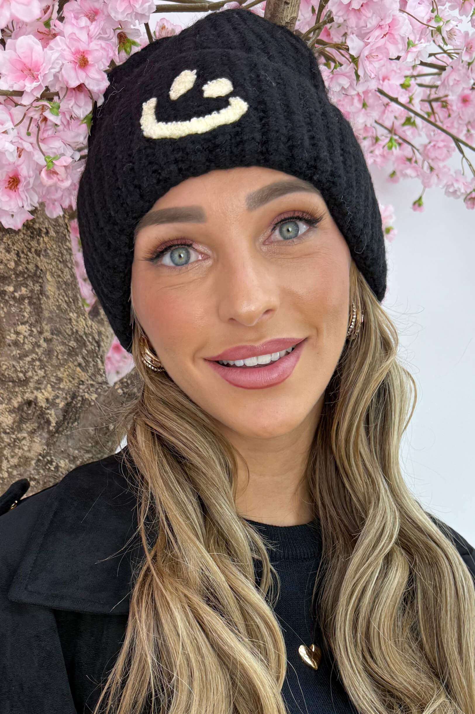 KEEP SMILING! 🙂 Oh-my… hoe leuk is dit?! De Keep Smiling Muts is gebreid, super cozy én heeft een teddy smiley voorop die je look meteen happy vibes geeft.