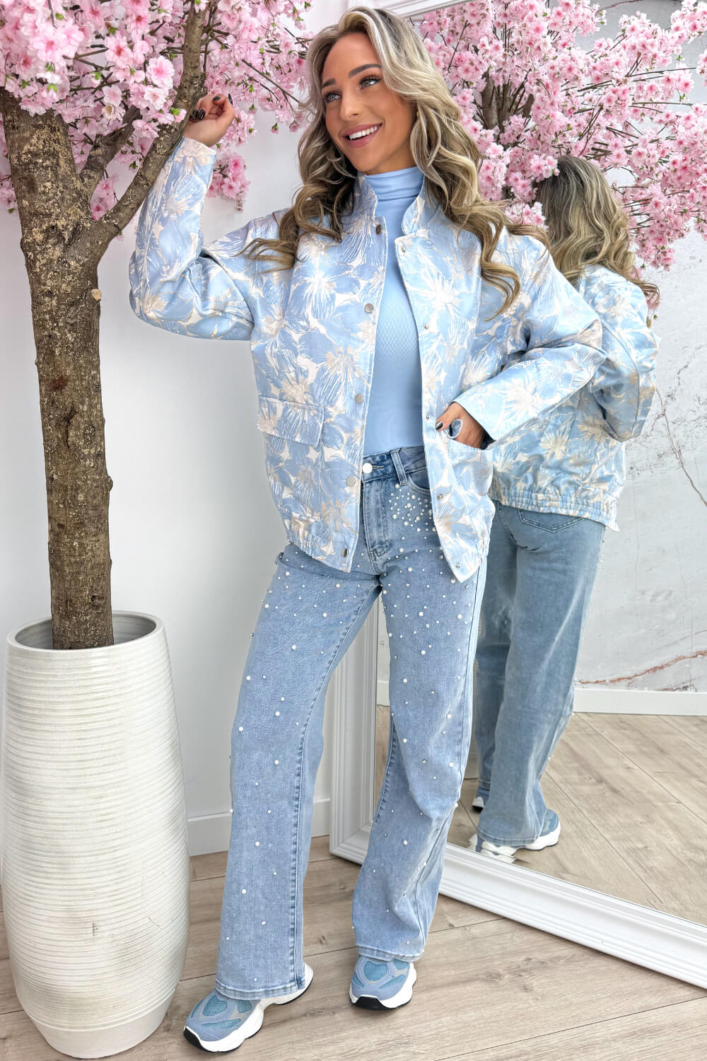 Deze bomber is er in verschillende kleurtjes — en eerlijk? Ze zijn stuk voor stuk zó leuk dat kiezen echt een ding wordt... 😅 De stof is prachtig, het patroon is chefs kiss en dat subtiele goud erin maakt ‘m net even extra speciaal! Je draagt ‘m makkelijk open of dicht met de drukknoopjes, net waar je zin in hebt! Extra fijn: hij heeft steekzakken 👏🏼 Dus al je essentials kunnen gewoon mee, zonder gedoe.
