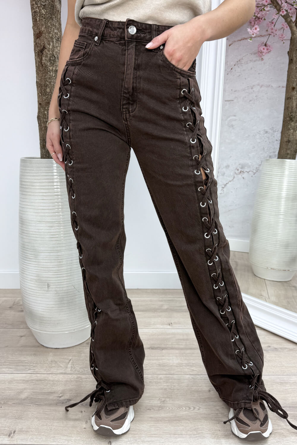 Choco laced straight leg jeans - Bruin