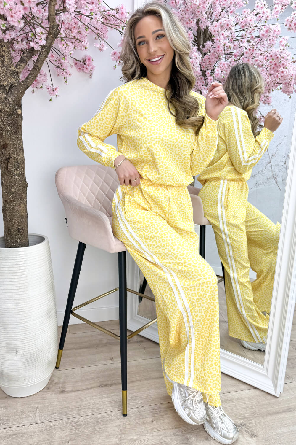 Home/Kleding/Leopard stripe comfy co-ord - Geel
