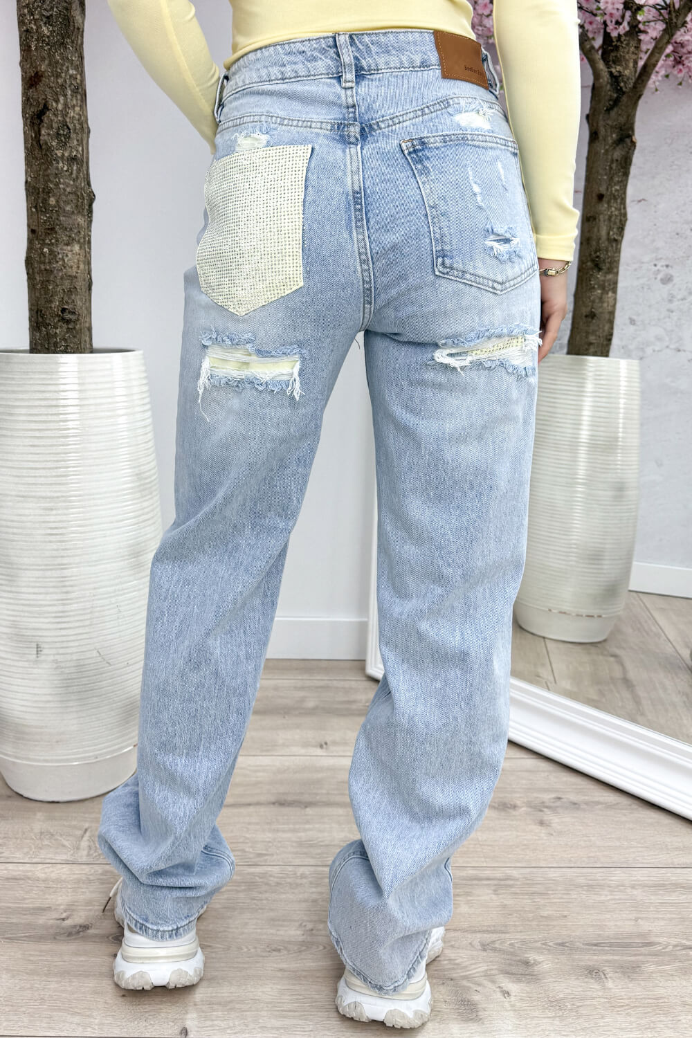VIRAL JEANS! 🩷 Oké luister… twee keer knipperen en deze jeans is weg! 😱 De Popular Diamond Jeans lijkt van voren misschien een basic, maar draai je om en bam — die roze achterzak met diamantjes en damage details steelt gewoon de show!