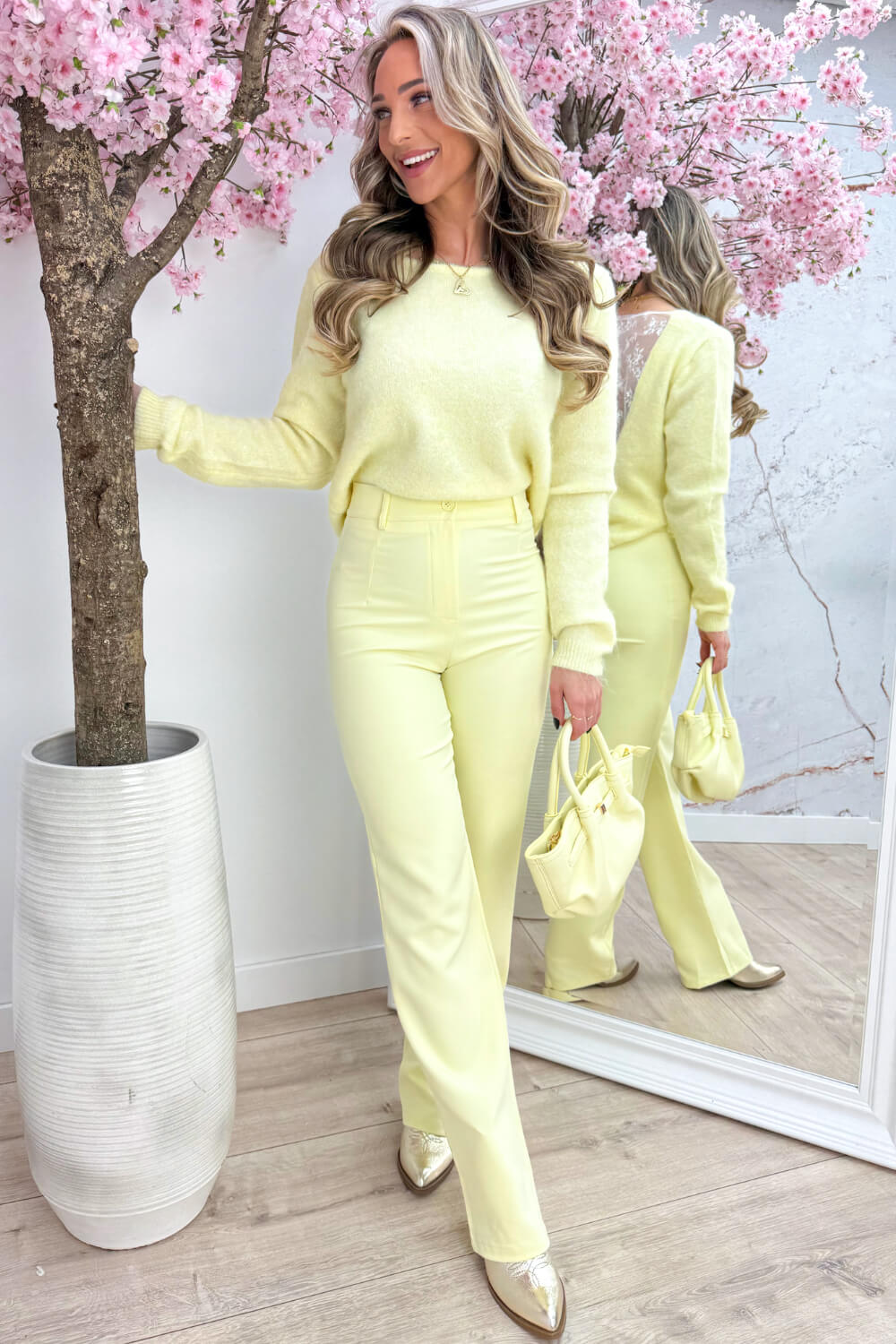 Pretty back lace trui - Geel