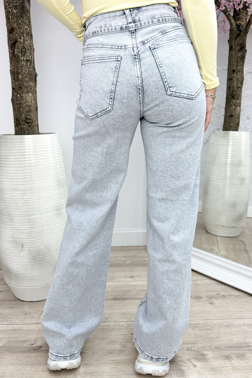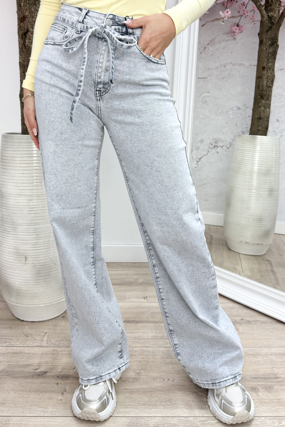 Tie and shine wide leg jeans - Lt. grijs