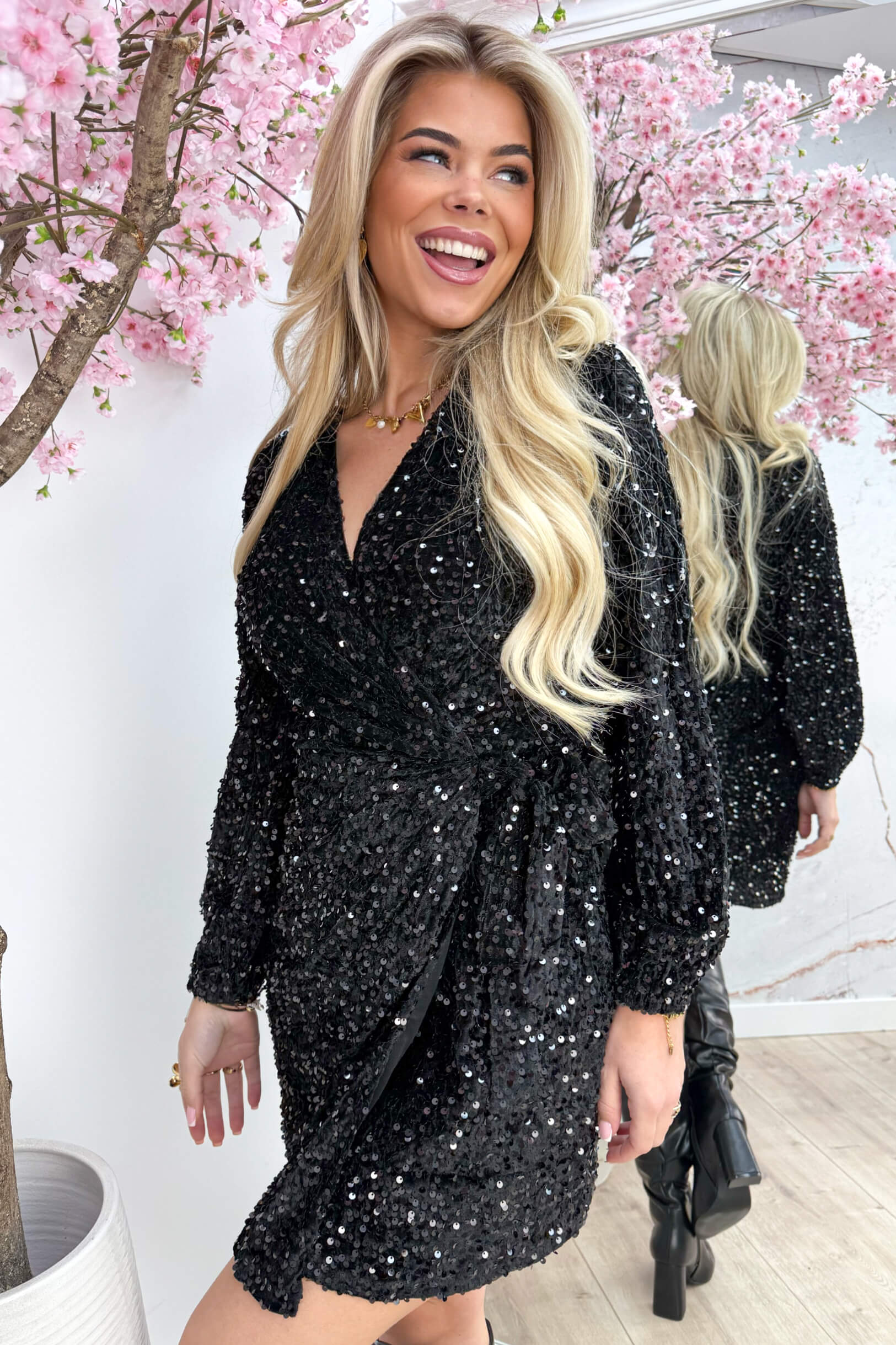 PARTY SEASON = LOADING! 🪩 En met deze jurk ben jij méér dan klaar om te shinen! De Velvet Paillet Omslag Dress is gemaakt van een zachte velvet stof, heeft pailletten all-over (need we say more? 😍) & een flatteus omslagmodel dat bij iedereen goed staat!