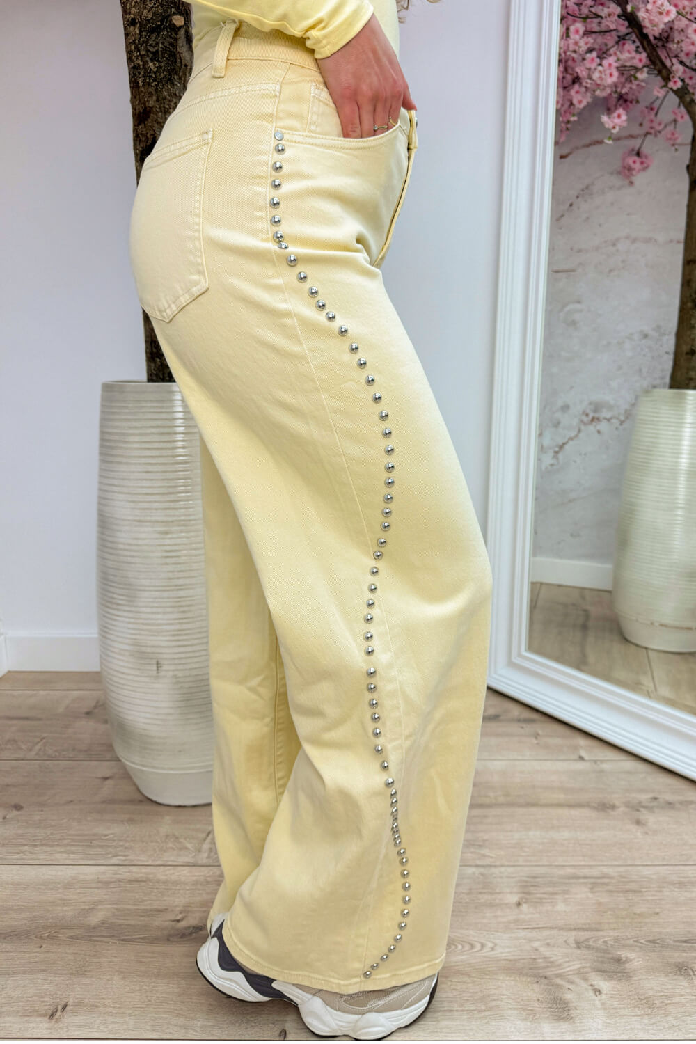 Home/Jeans/Wavy studs wide leg jeans - Geel