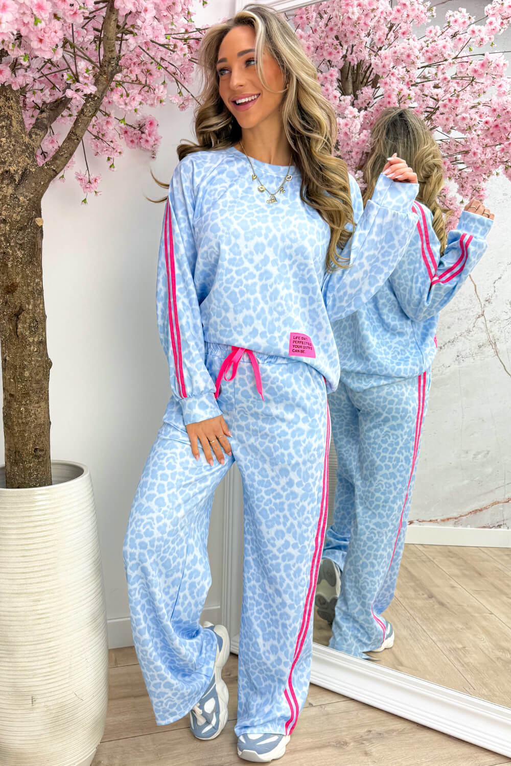 Leopard perfect embleem comfy co-ord - Sky blue