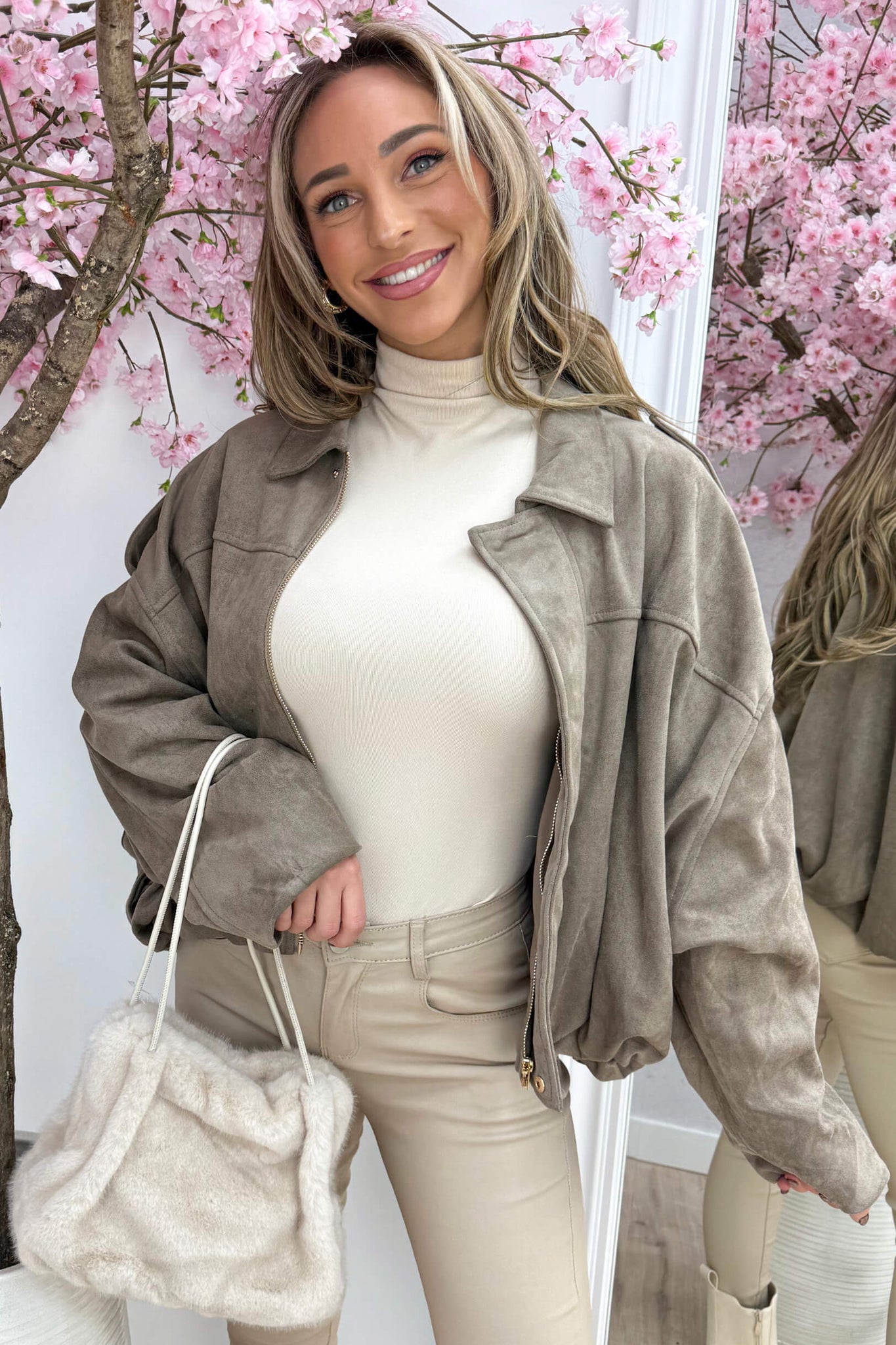 Autumn feelings suede look bomber - Taupe