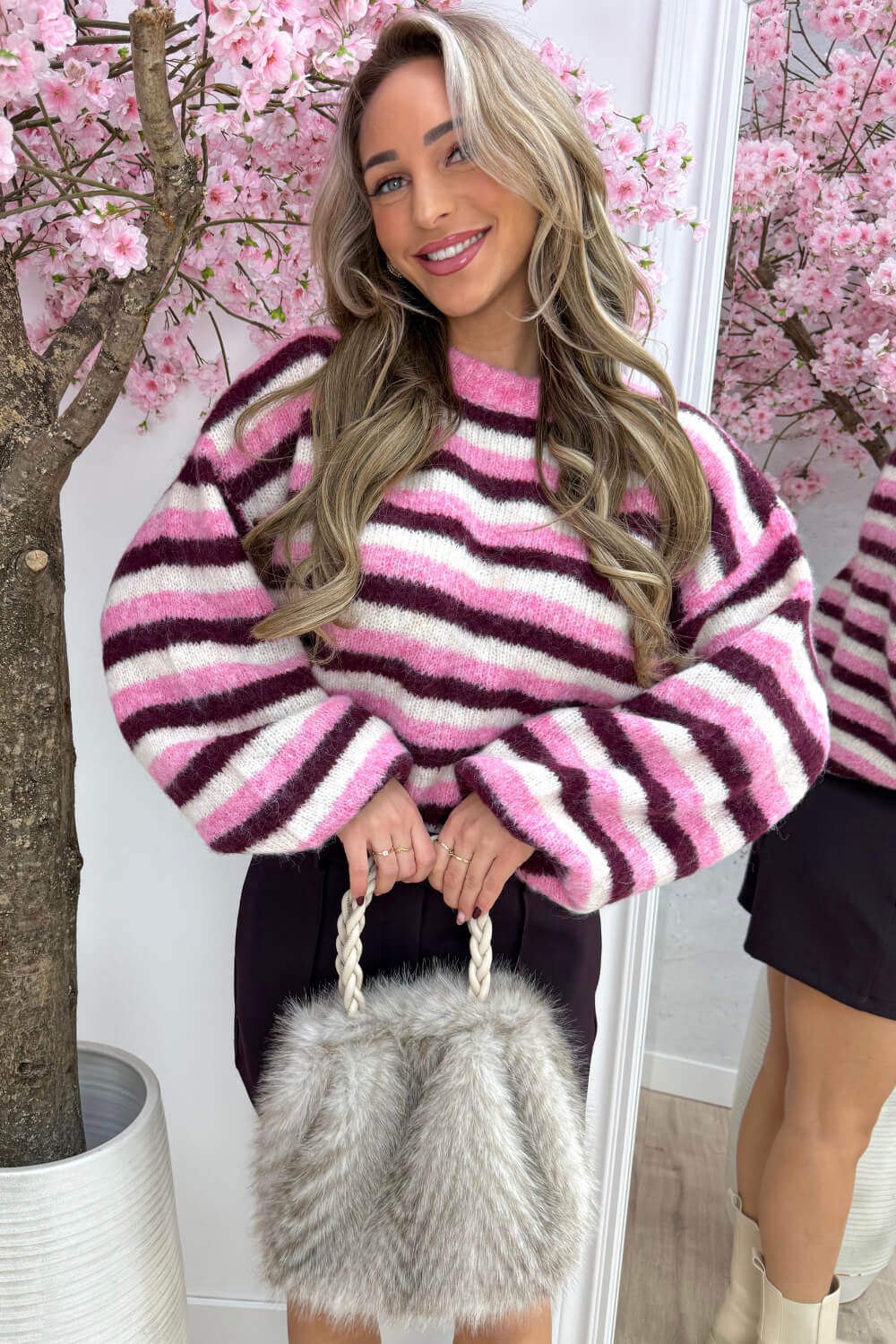 Frosty mornings stripe trui - Lollypop roze