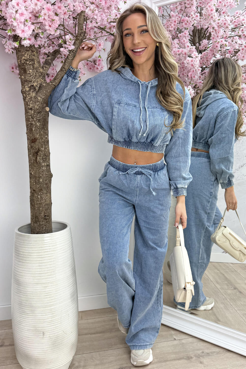 Cropped, elastiek in de taille én een comfy capuchon — zó leuk & comfy tegelijk! Perfect los of match met de bijpassende jogger jeans voor de ultieme set 👀 Sneakers eronder, tas erbij & je look is instant on point! 💙