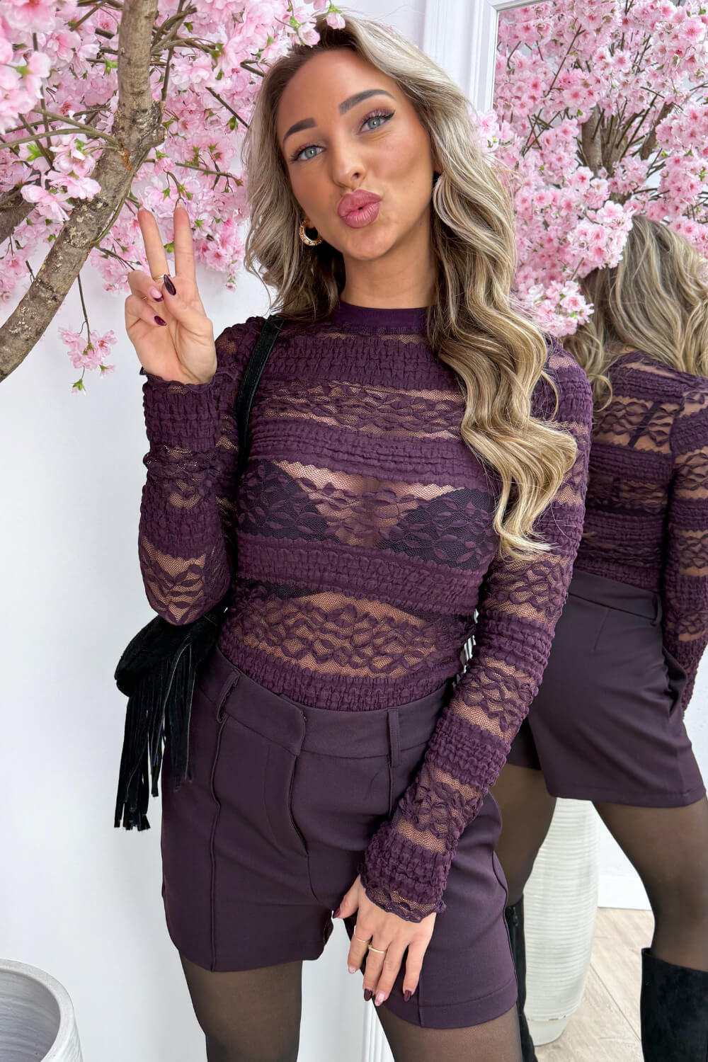 Laced in details topje - Berry purple