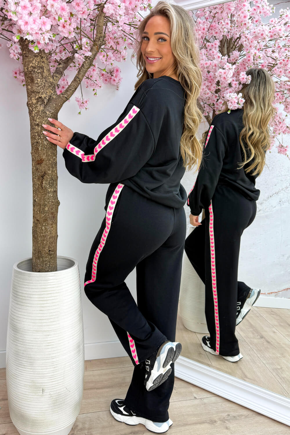 De zachte stof voelt heerlijk aan en de sportive zijstreep met hartjes geeft net dat beetje extra aan een basic sweater, casual, maar toch opvallend door het lieve detail.💕