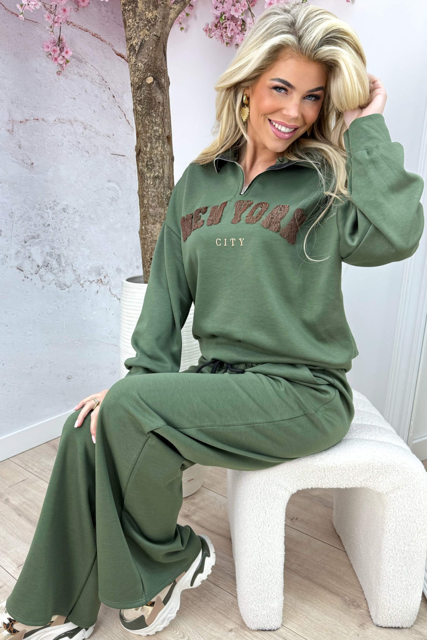 New york zipper comfy co-ord - Army