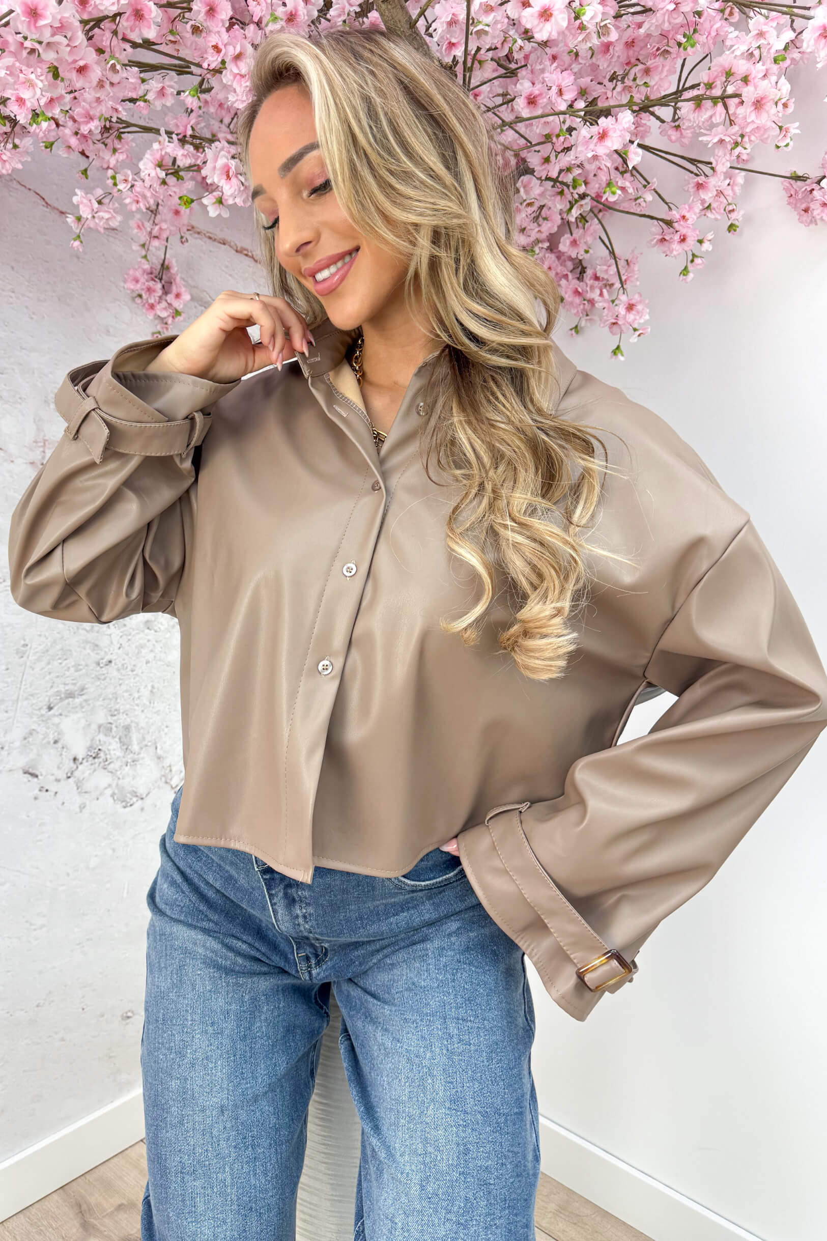On trench leather look blouse - Beige
