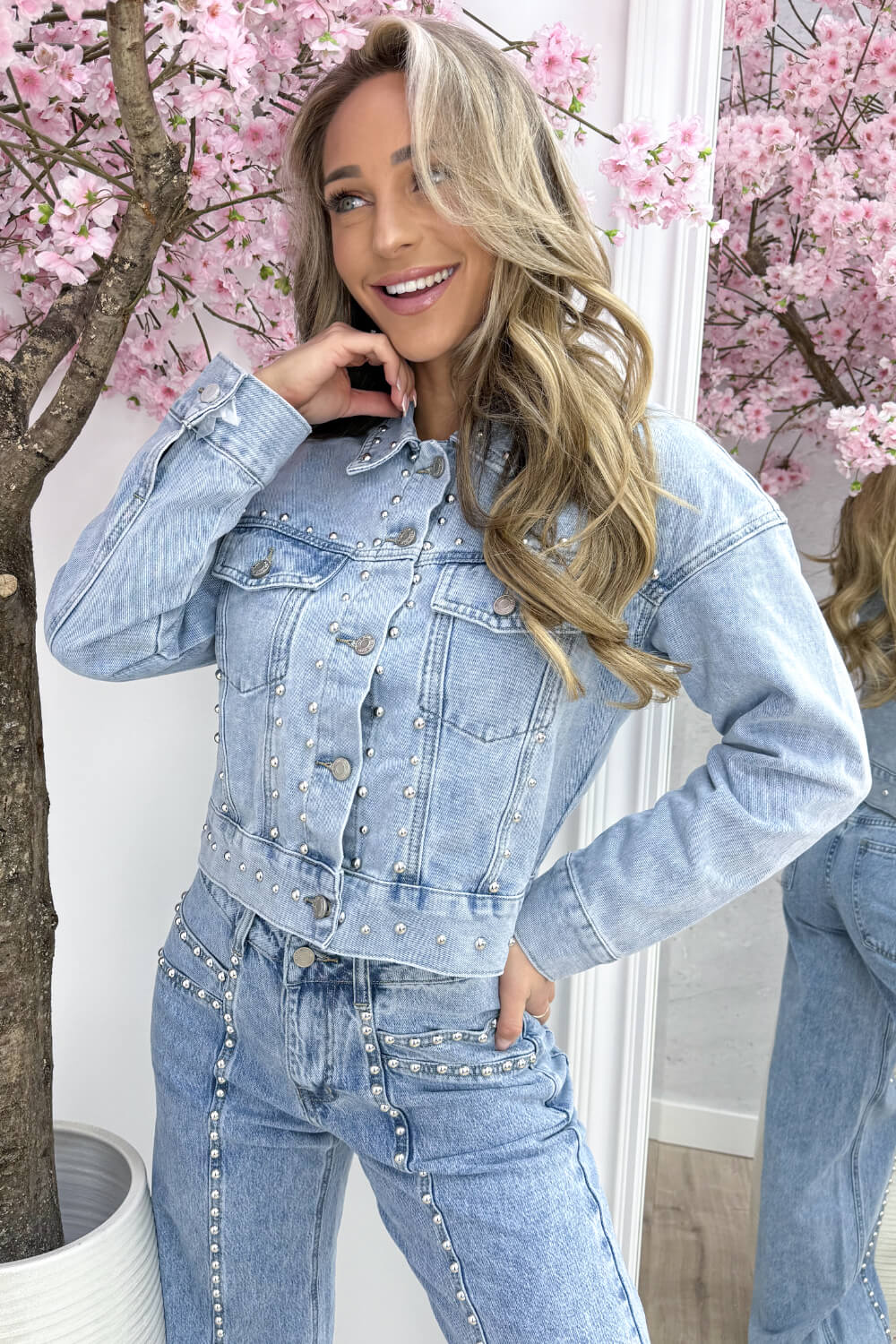 Ons Rebel spark denim jasje is afgewerkt met zilveren studs die zorgen voor die edgy, fashionable toch.