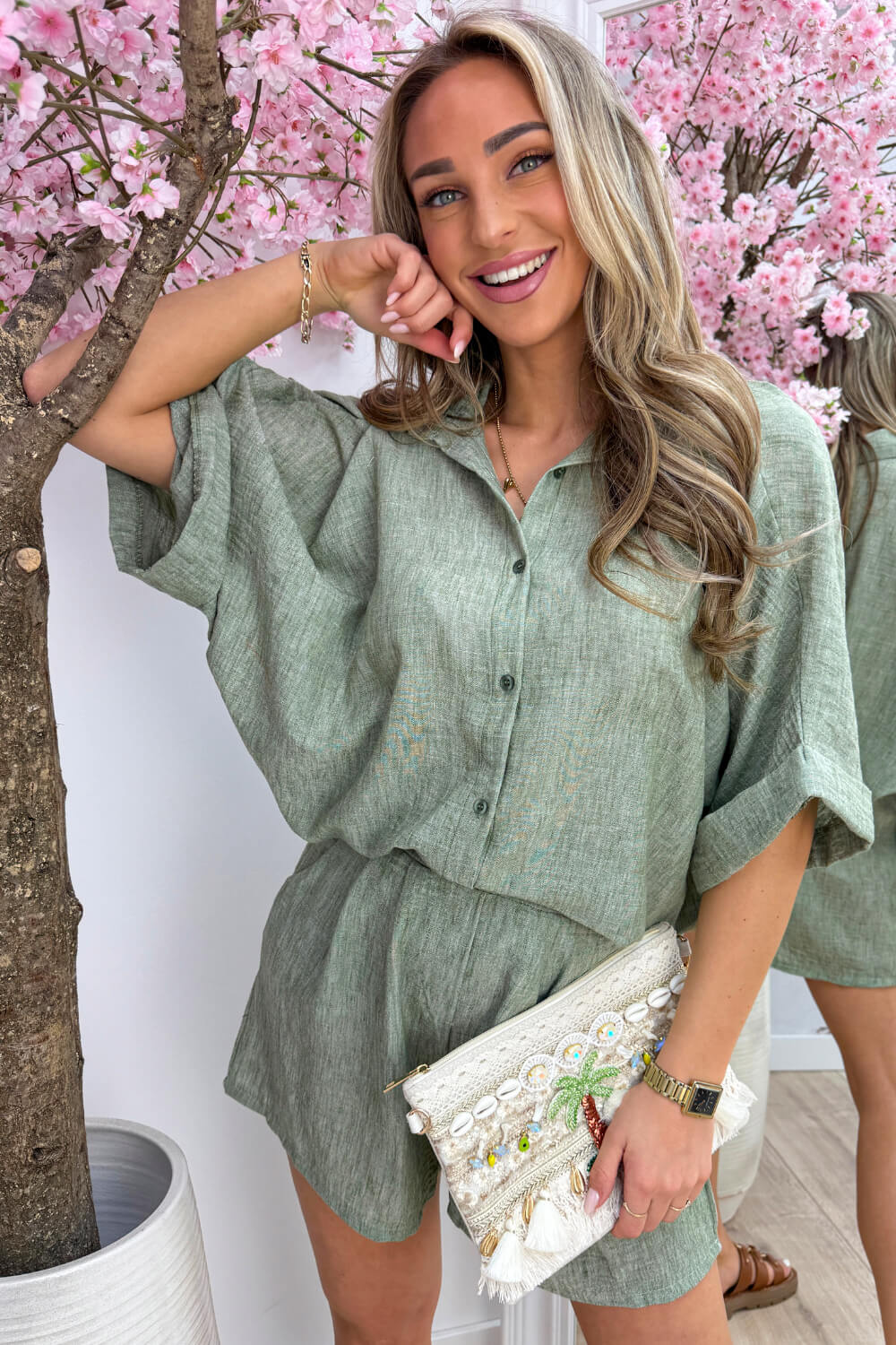 De Sevilla Summer Co-ord bestaat uit een blouse en bijpassende short met elastieken band aan de achterkant van een luchtige linnen-achtige stof (perfect voor sunny days ☀️). En dan het leukste… je kunt ‘m op zoveel manieren dragen!