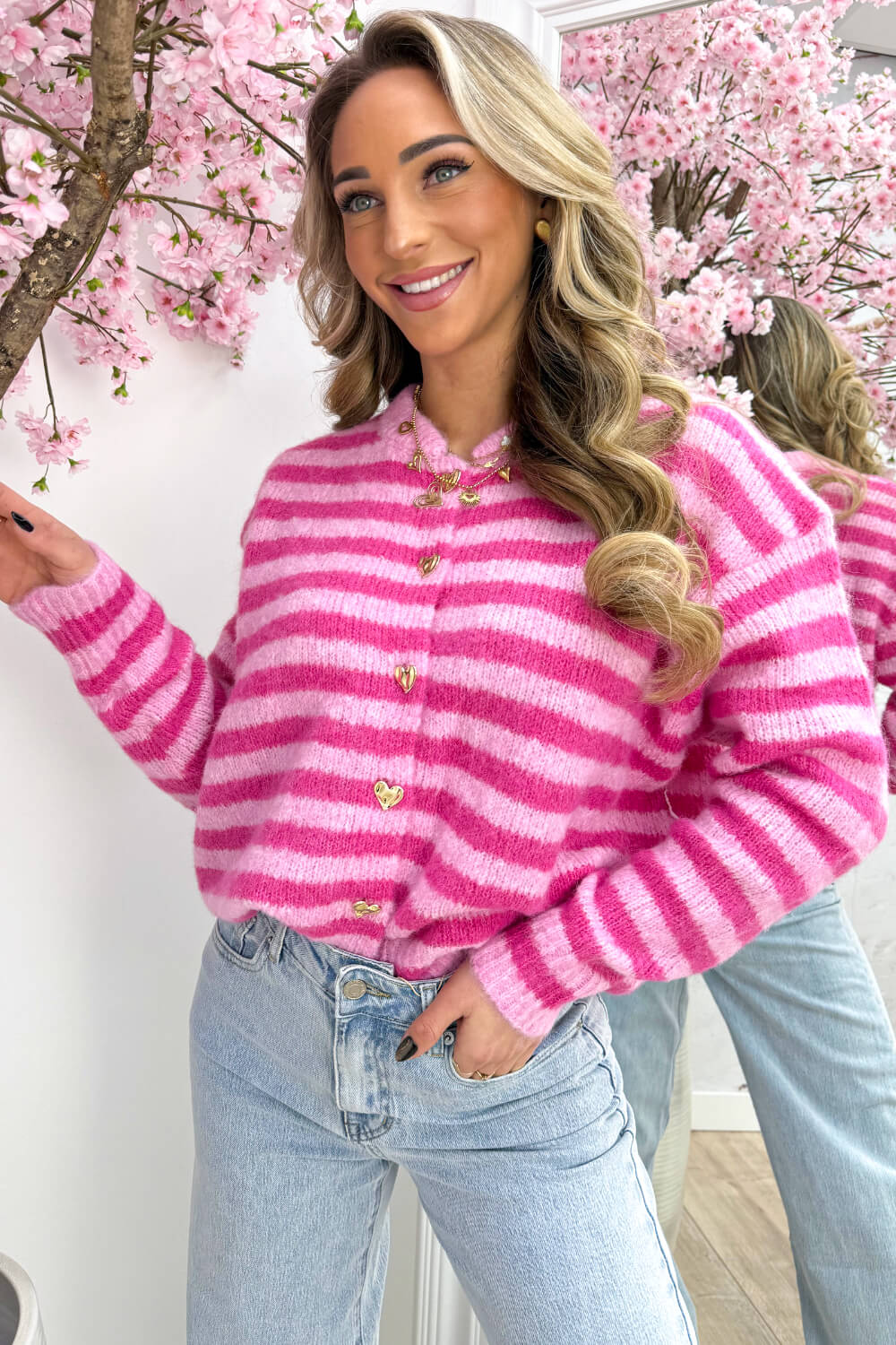 STRIPE A LITTLE LOVE! 💕 Deze trui is echt zo’n happy piece. Strepen + vrolijke kleurtjes = instant goede vibes. En het leukste? Je draagt ’m precies zoals jij wilt: dicht als trui óf open als vest. Love that! 😍