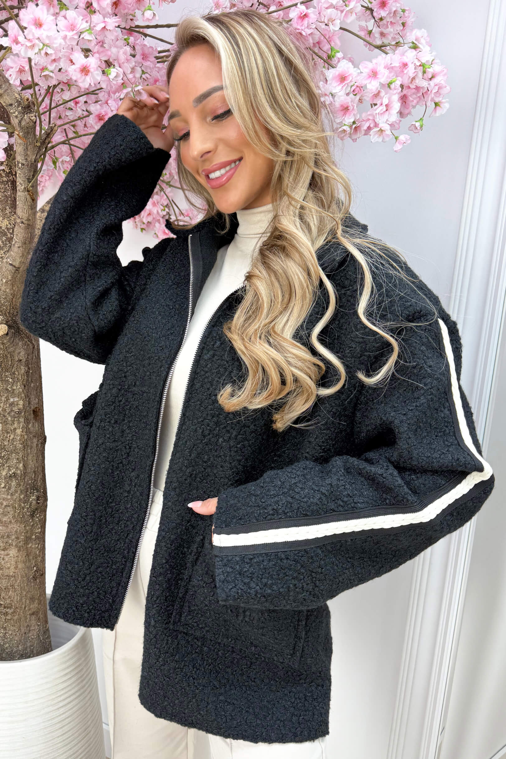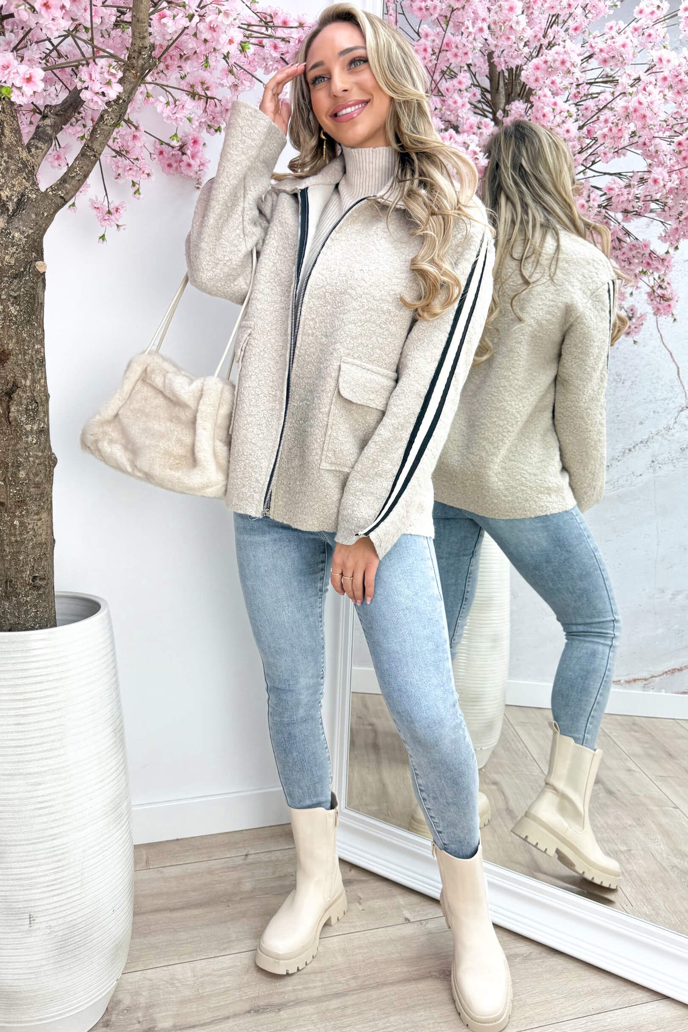 De Teddy Stripe Jacket is zacht, stylish en super easy om te combineren. Heerlijk zacht, easy to layer en met die leuke strepen die elke outfit nét wat stoerder maken. Perfect voor city strolls, coffee dates of lazy days.