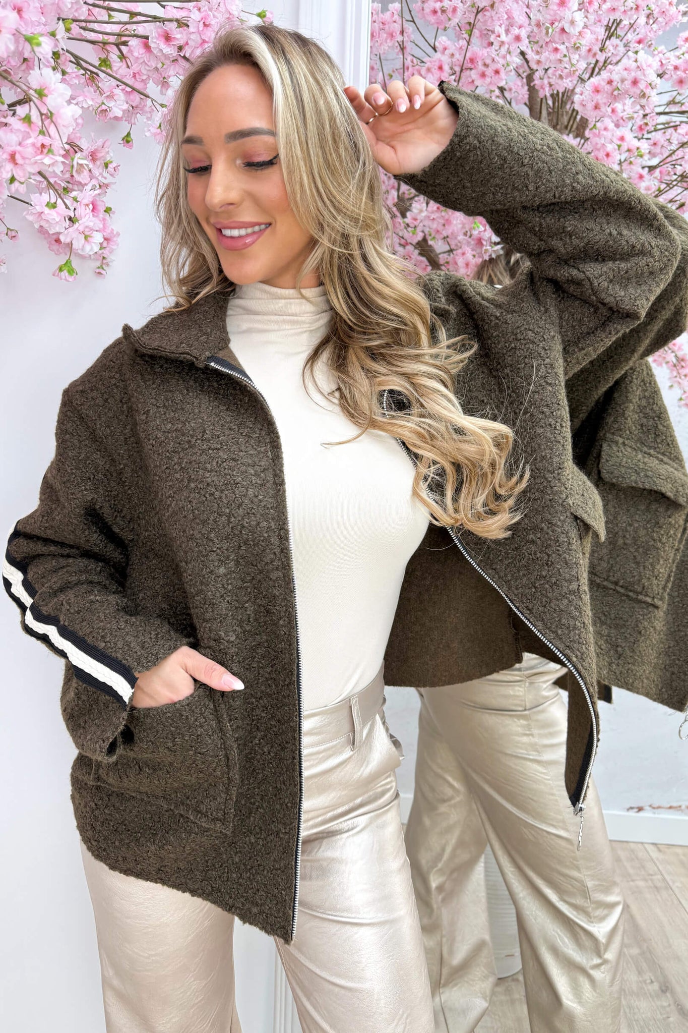 De Teddy Stripe Jacket is zacht, stylish en super easy om te combineren. Heerlijk zacht, easy to layer en met die leuke strepen die elke outfit nét wat stoerder maken. Perfect voor city strolls, coffee dates of lazy days.