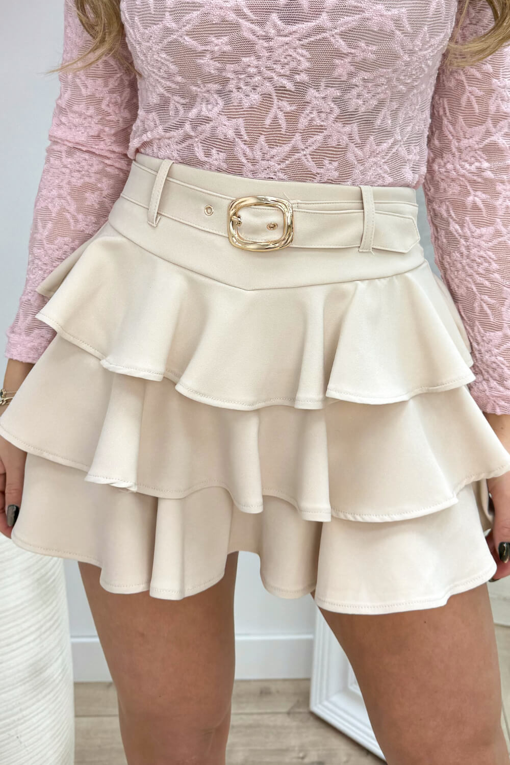 De speelse laagjes geven ‘m die perfecte MWL-vibe en het riempje? Die zit vast aan de skort, dus je outfit ziet er altijd tip-top uit zonder gedoe.