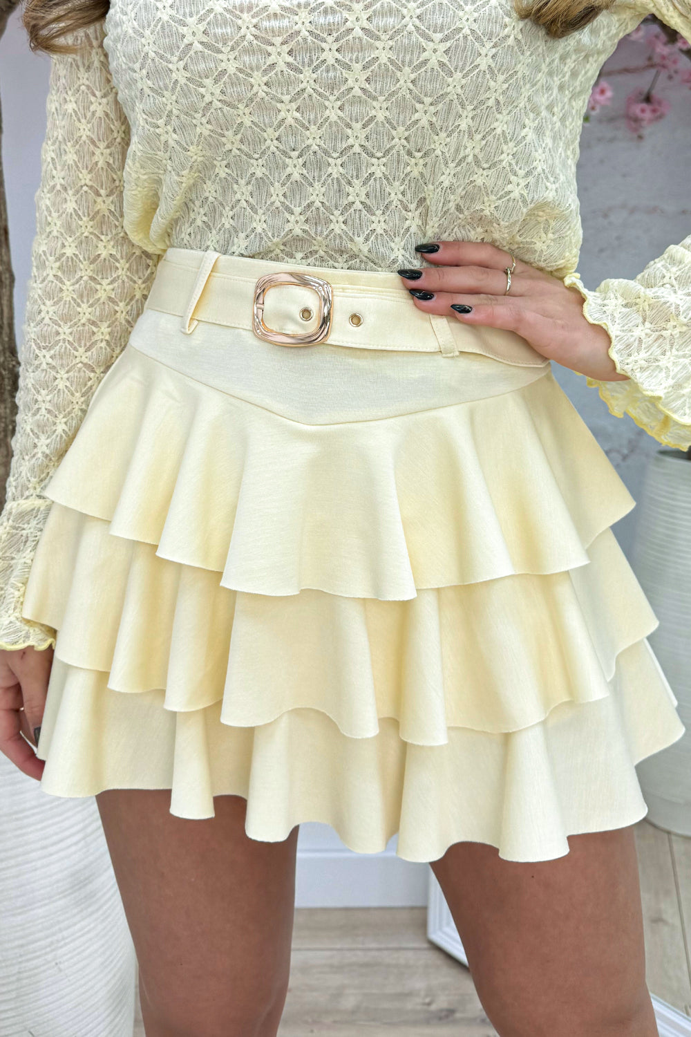 De speelse laagjes geven ‘m die perfecte MWL-vibe en het riempje? Die zit vast aan de skort, dus je outfit ziet er altijd tip-top uit zonder gedoe.