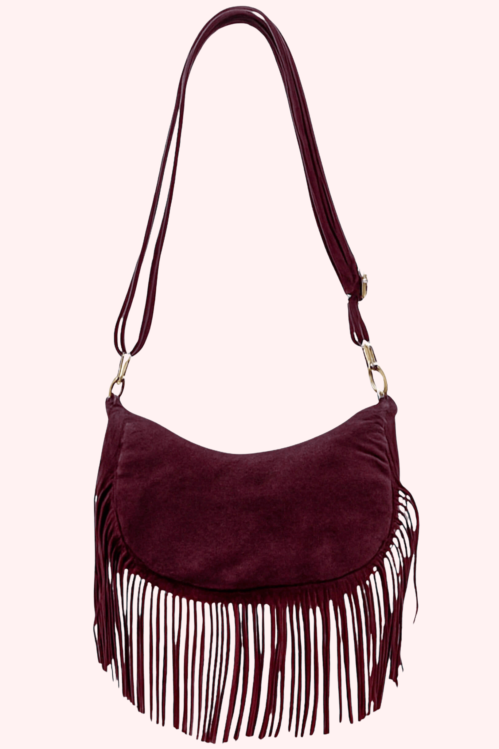 Home/Tassen en clutchen/Suede fringe bag (Echt leer) - Bordeaux