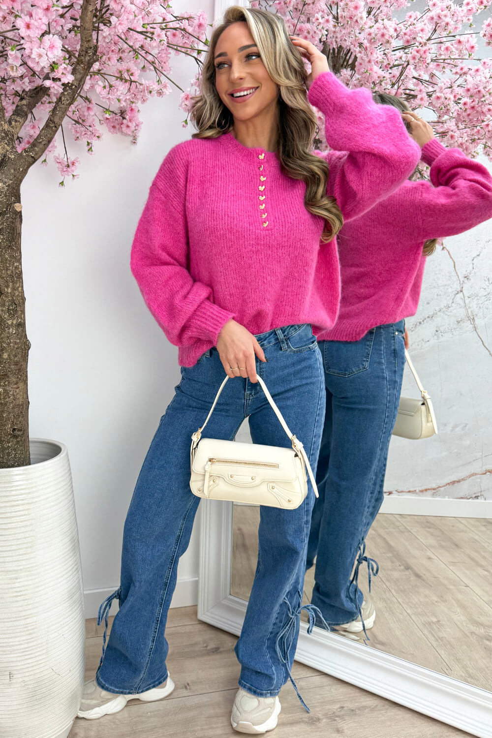 LOVE IT! 🩷 Wij zijn helemaal verliefd op deze trui! De Little Hearts Trui is lekker zacht, comfy en heeft die schattige gouden hartjes als detail — klein, maar zó leuk. Precies genoeg om ’m speciaal te maken, zonder dat het too much wordt.