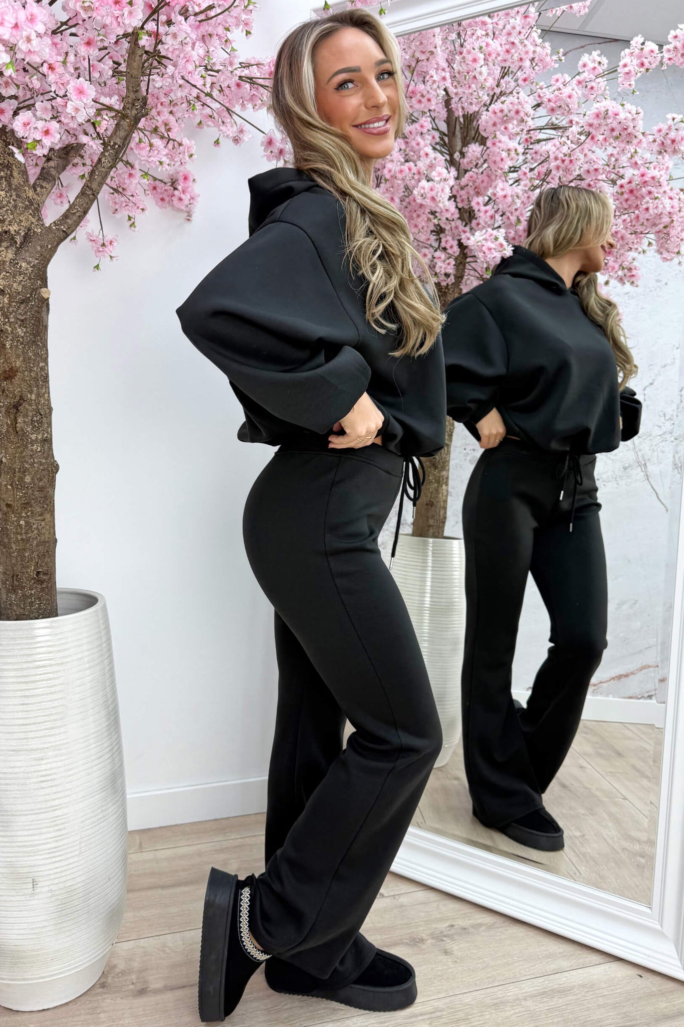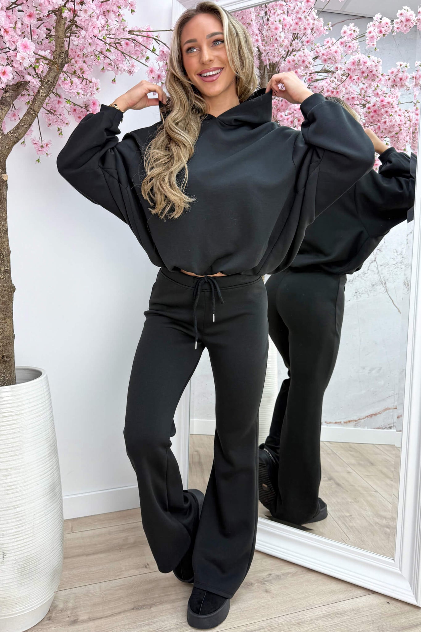 De hoodie heeft een elastiek in de taille waardoor hij mooi gepoft valt – casual, maar toch super stijlvol. De bijpassende jogger is HEEEEL comfy en heeft een elastische tailleband met verstelbare touwtjes, zodat hij altijd perfect zit.