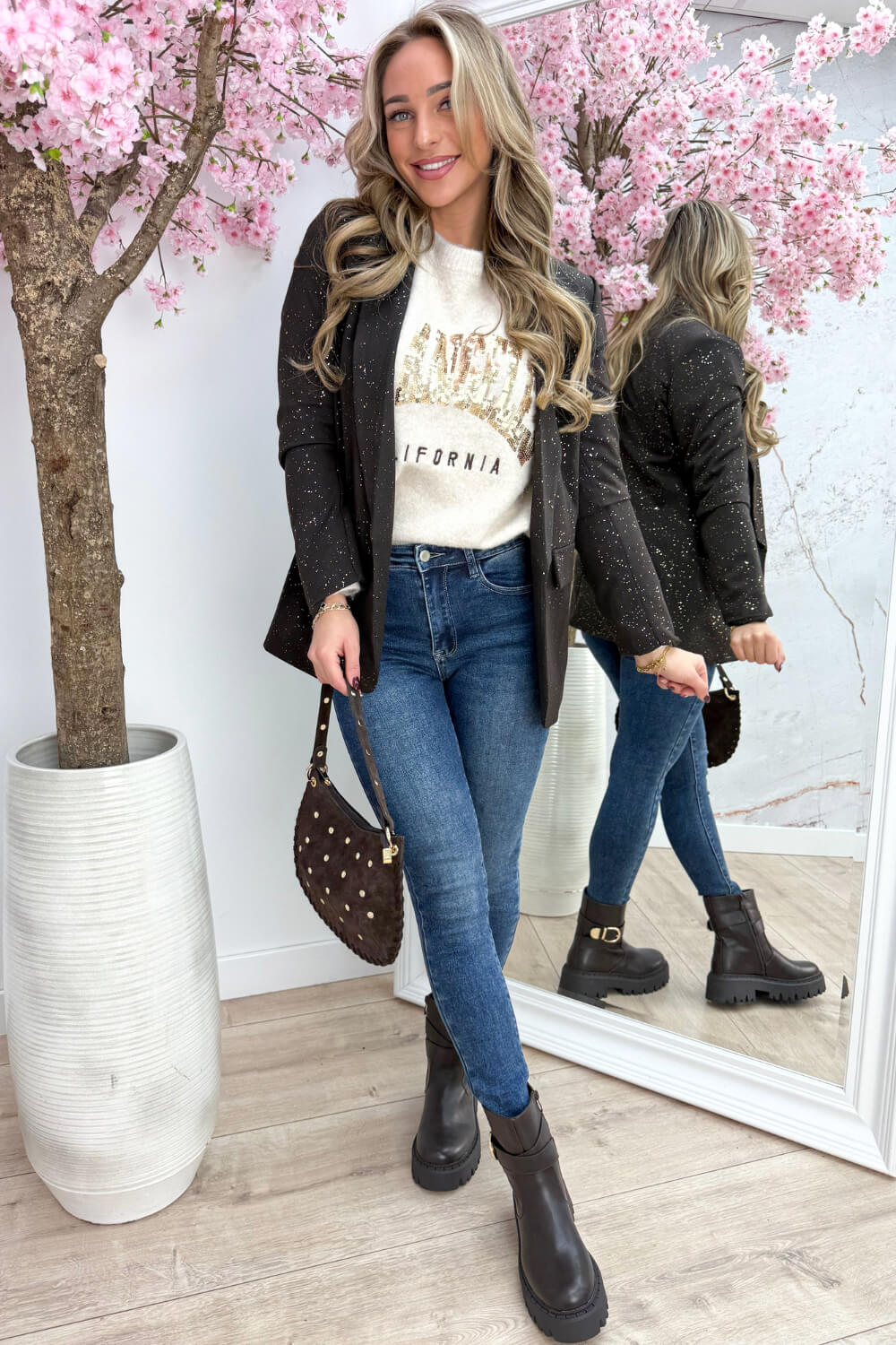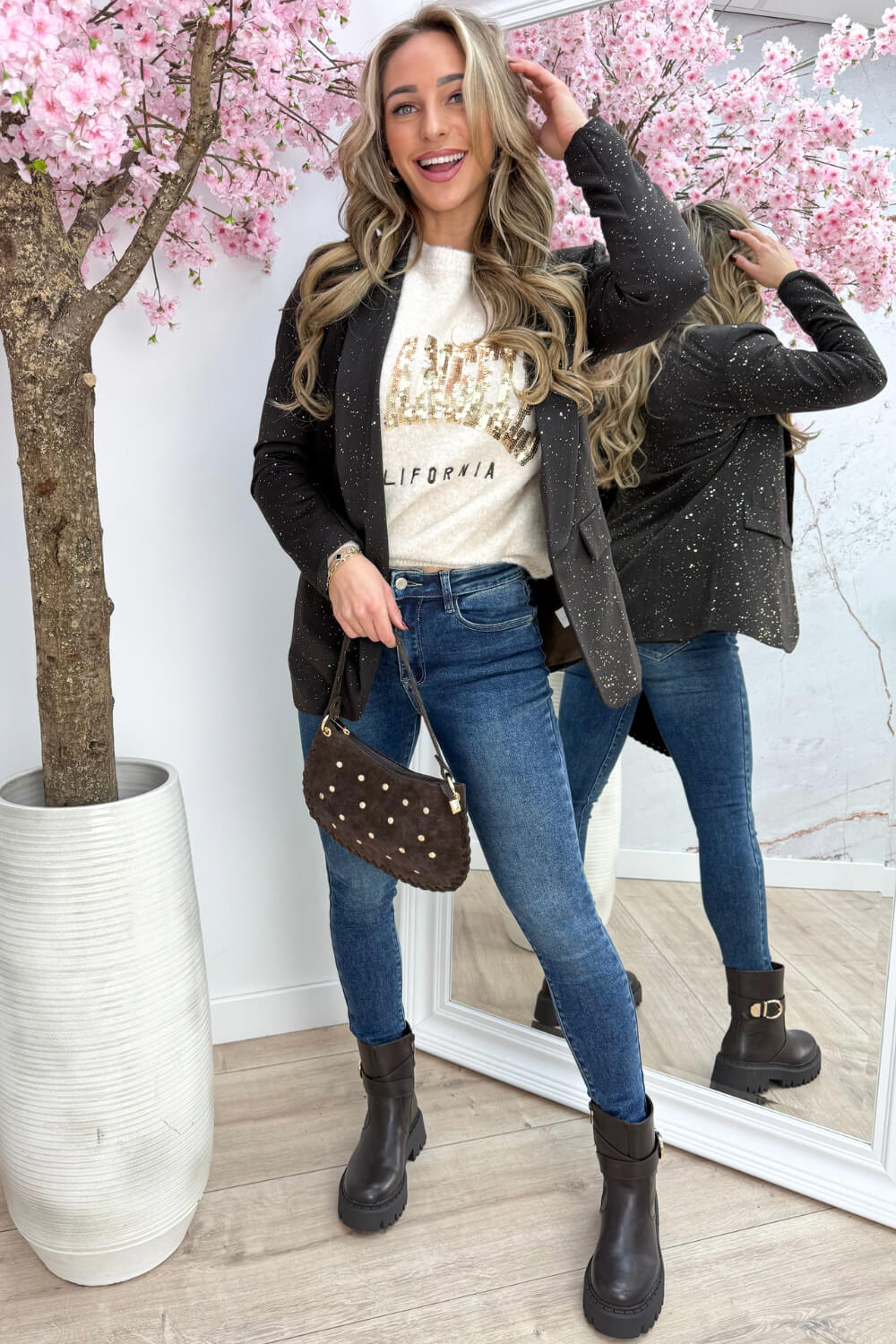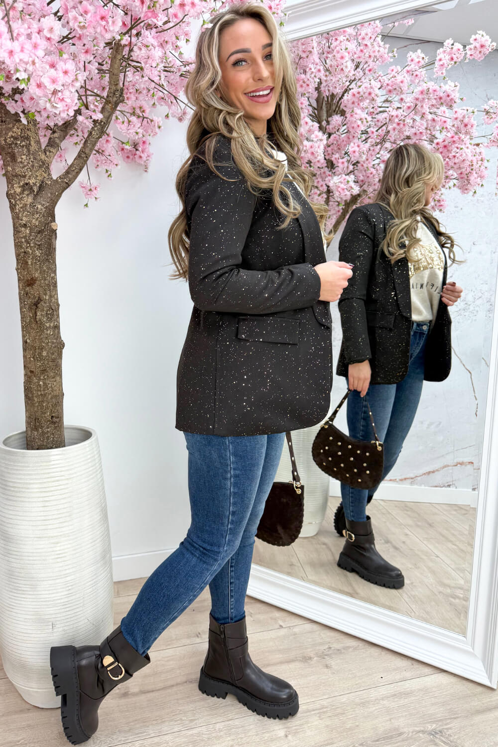 NEW FAVORITE! 🩷 Oh-my… dit is echt de blazer die je dit feestseizoen nodig hebt! De Wonderful Glitter Blazer heeft die perfecte fit met schoudervullingen én die glittertjes all-over? We love it!