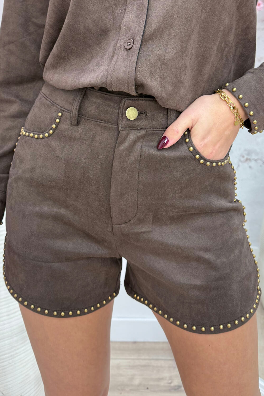 Studded suede look short - Bruin