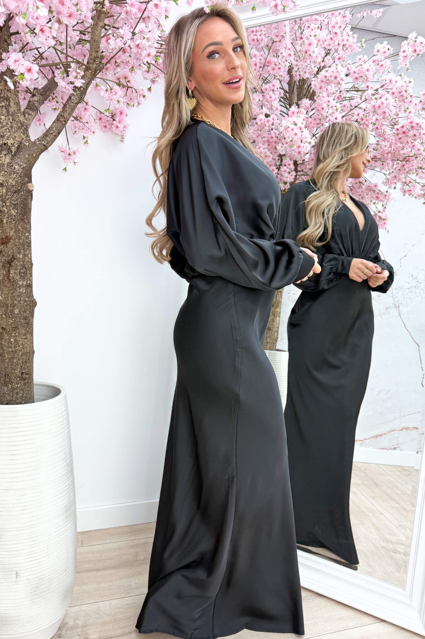 Elegant satin maxi dress - Zwart