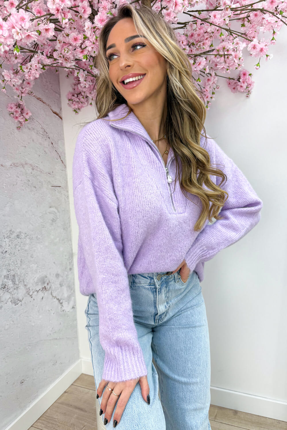Pearl zipper trui - Lila