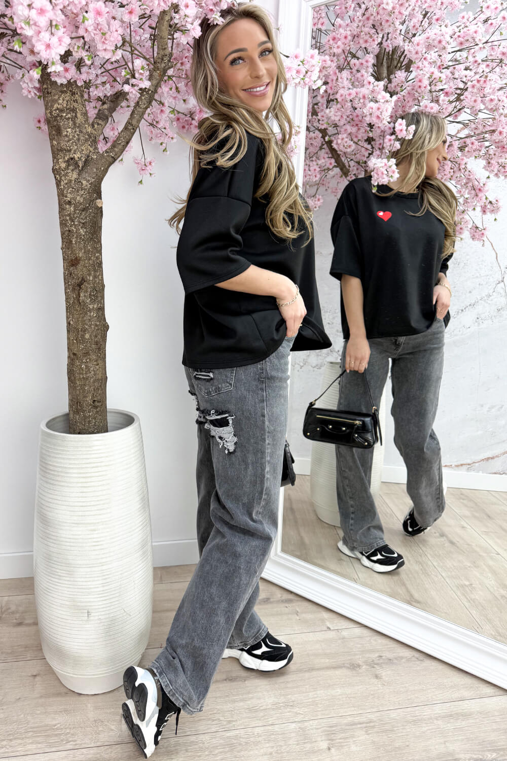 Het hartje geeft een subtiele, speelse toch die je look meteen vrolijk maakt, terwijl het shirt lekker makkelijk te combineren is met al je favoriete outfits. 💕