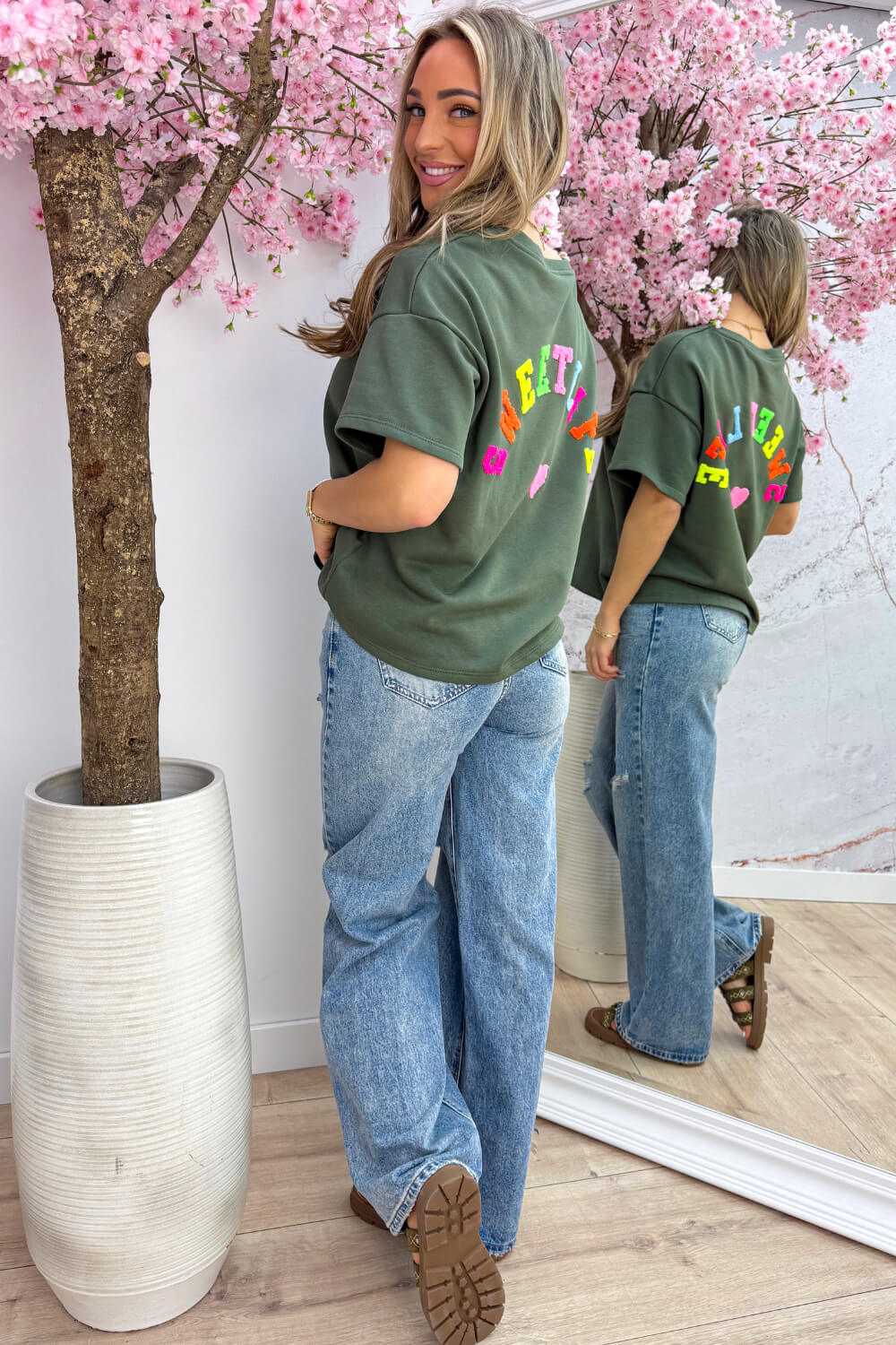 Het Lucky Girl T-shirt is gemaakt van 100% katoen, dus ja.. hij zit heerlijk 😌 En die fit? Net zo fijn! Van de voorkant lijkt het misschien een perfecte basic… maar wacht tot je de achterkant ziet 👀 zó leuk! Gooi ‘m op je favoriete jeans of skort en klaar… jouw outfit is on point! 🤭