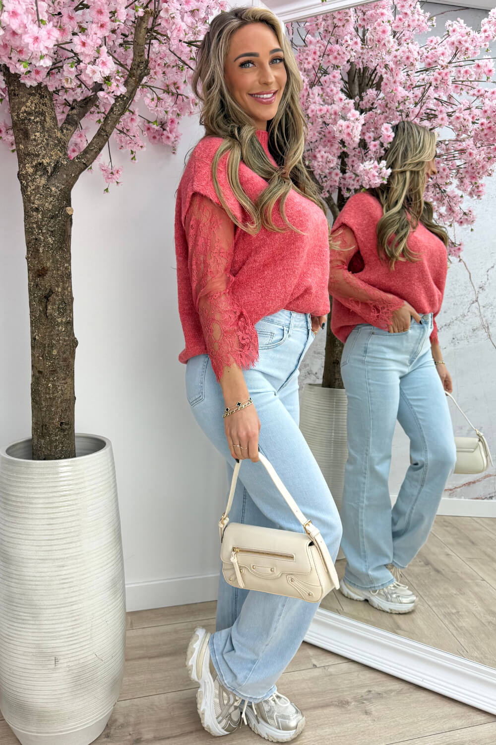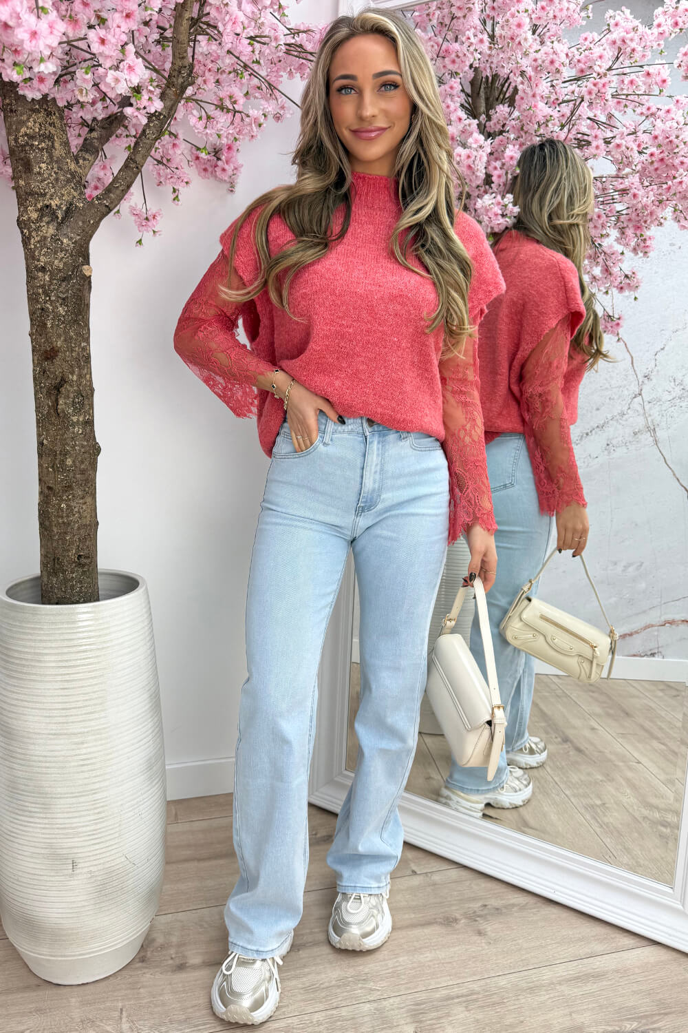 De Two in One Lace Trui heeft het allebei: een kanten top met daaroverheen een truitje — en ja, het zit gewoon aan elkaar vast. Ziet eruit als een layered look, maar voelt als één item. Makkelijker wordt het niet!