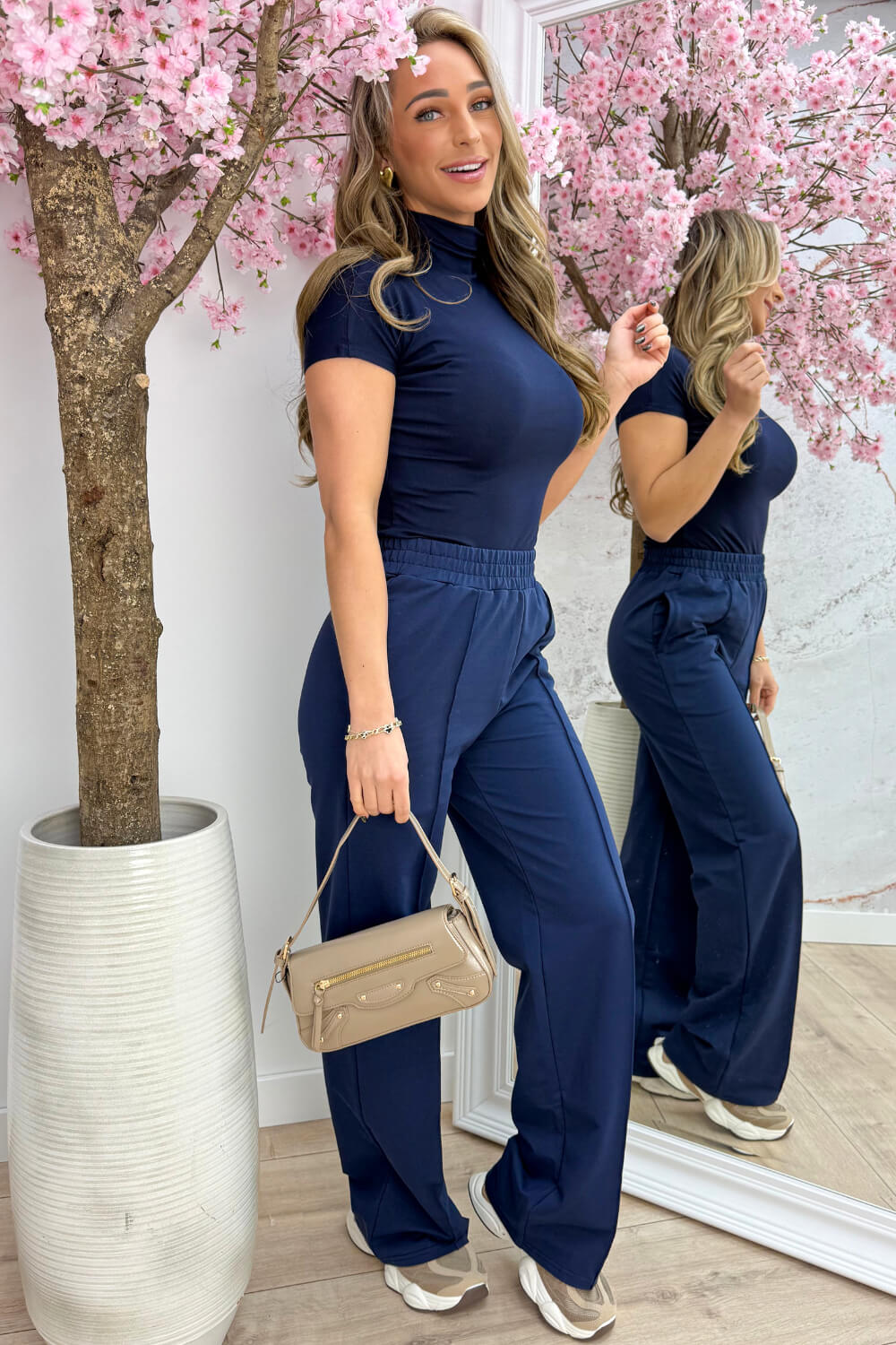 Top básico cuello vuelto - Azul marino