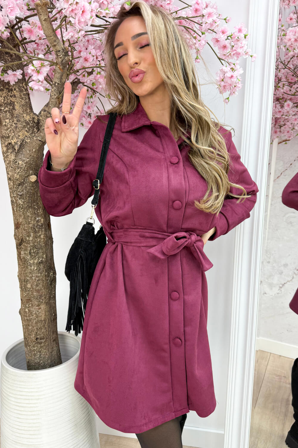 Gemaakt van het trendy suede look stofje, met een bijpassend ceintuurtje waarmee je ‘m supermooi kunt tailleren. En het leukste? Je kunt ‘m echt op álle manieren stylen. Met een panty en laarzen voor een cozy winter look, of met boots voor een iets stoerdere vibe — alles werkt!