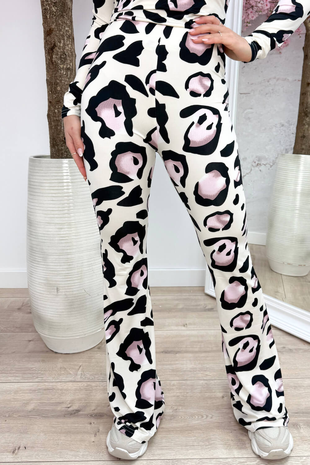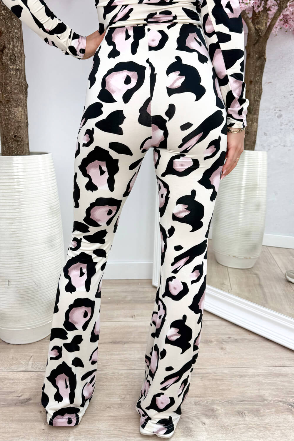 Big leopard travel flair pants - Roze