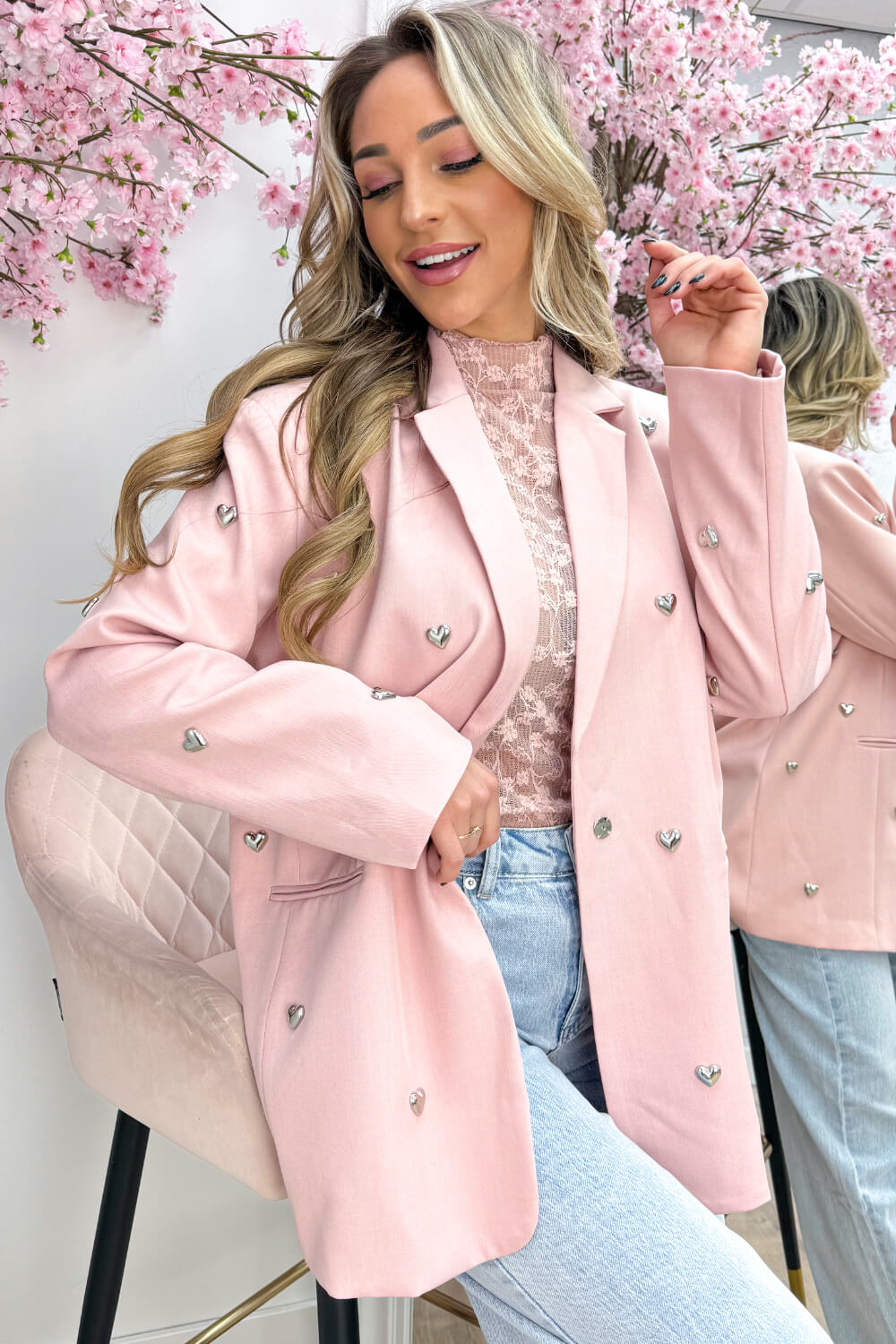 Silver hearts oversized blazer - Roze