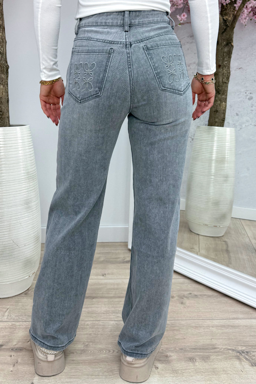 En als je dacht dat het gewoon een grijze jeans is⊠think twice. Draai âm eens om: de achterkant heeft namelijk een superleuk detail op de zakken. Klein, maar zĂł leuk â precies dat extraatje dat âm uniek maakt.