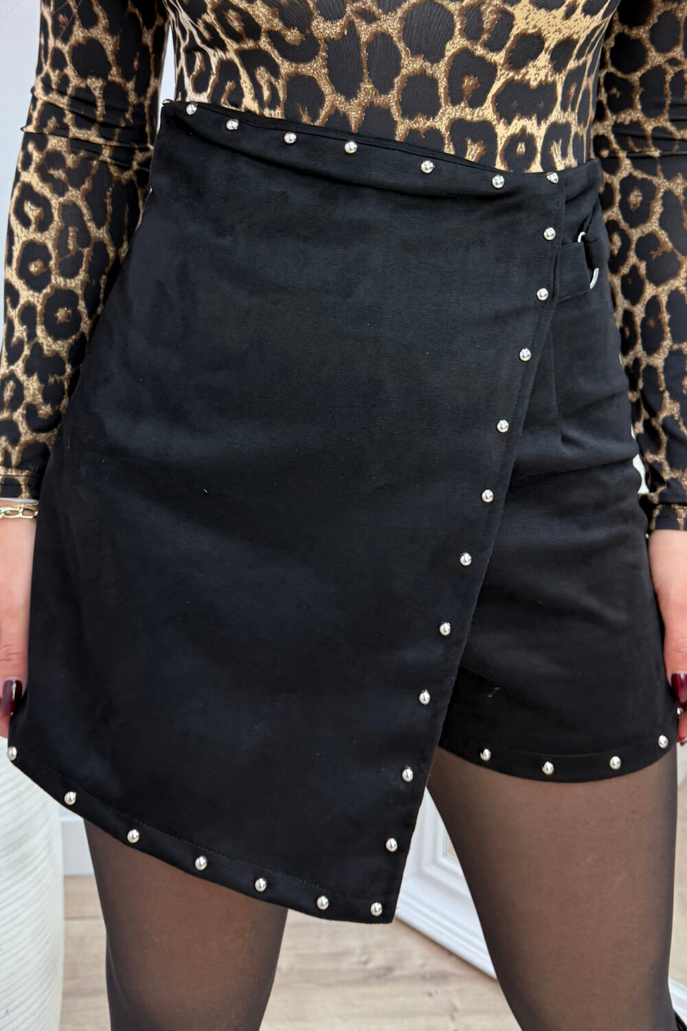 Suede look overlap heels - Zwart
