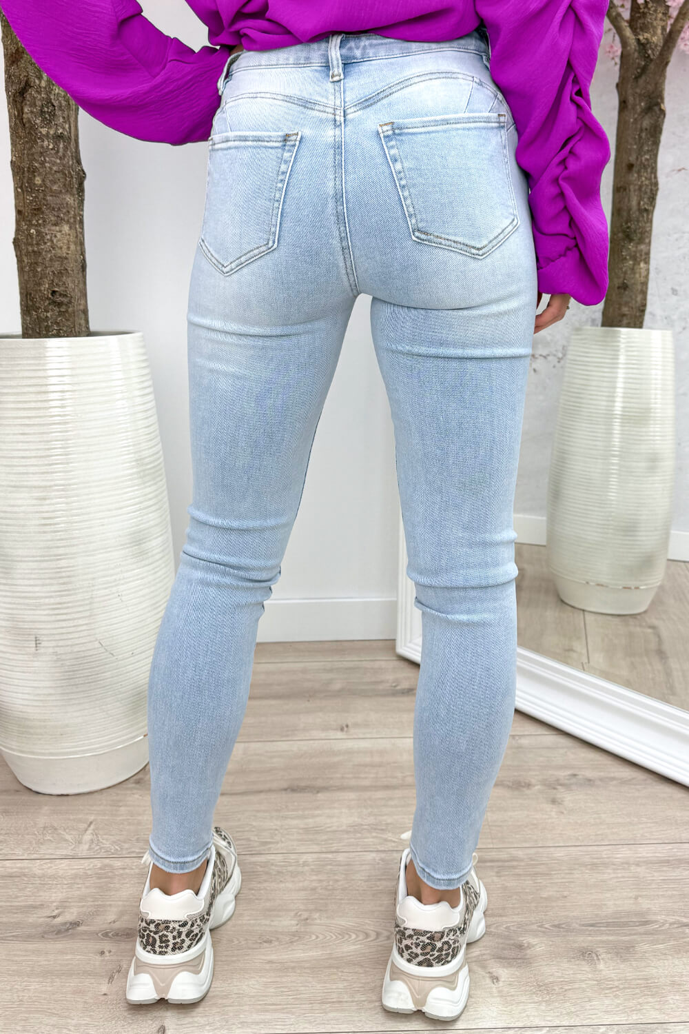 De zachte denim sluit mooi aan en geeft je billen net dat extra lift- effect waar je blij van wordt.