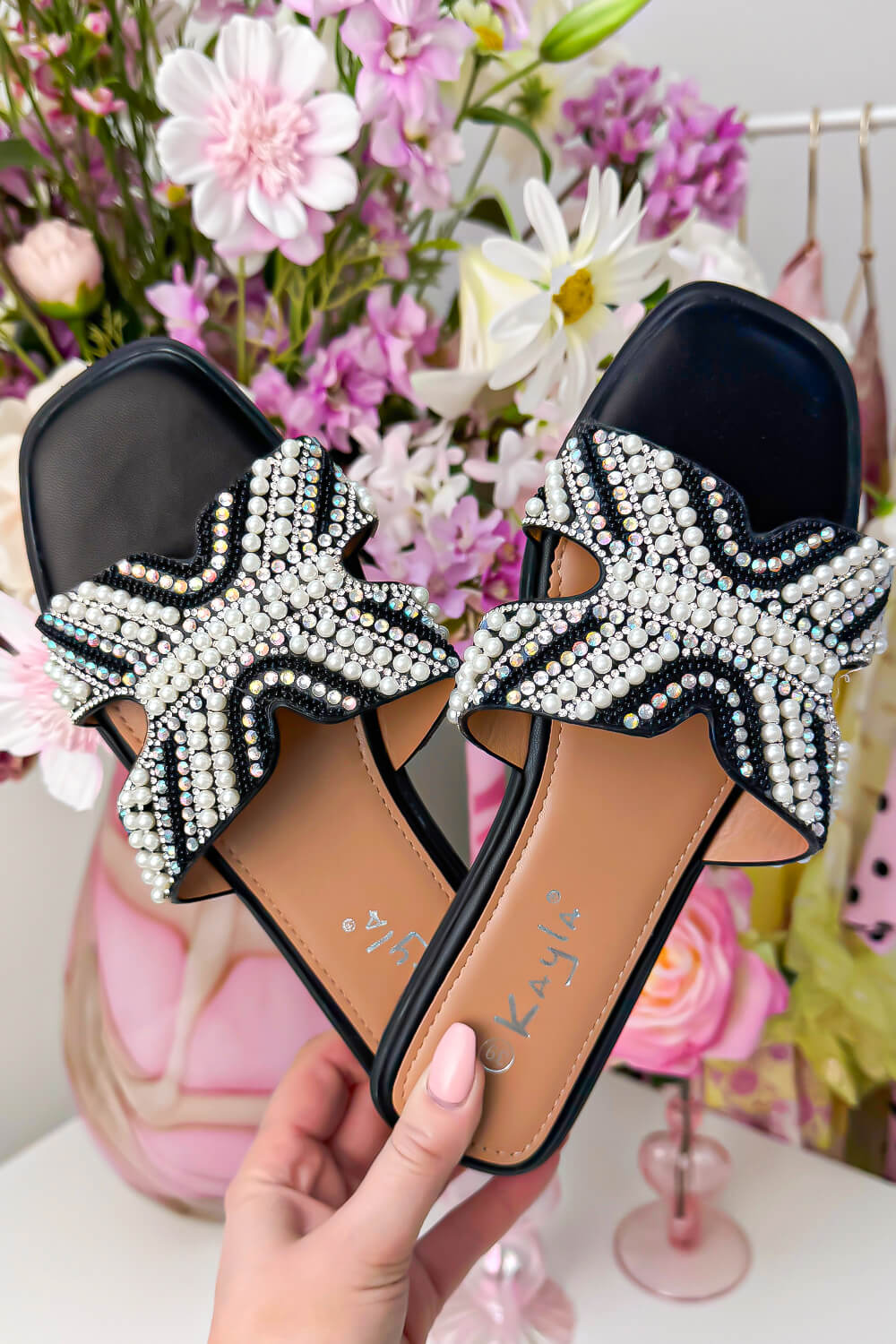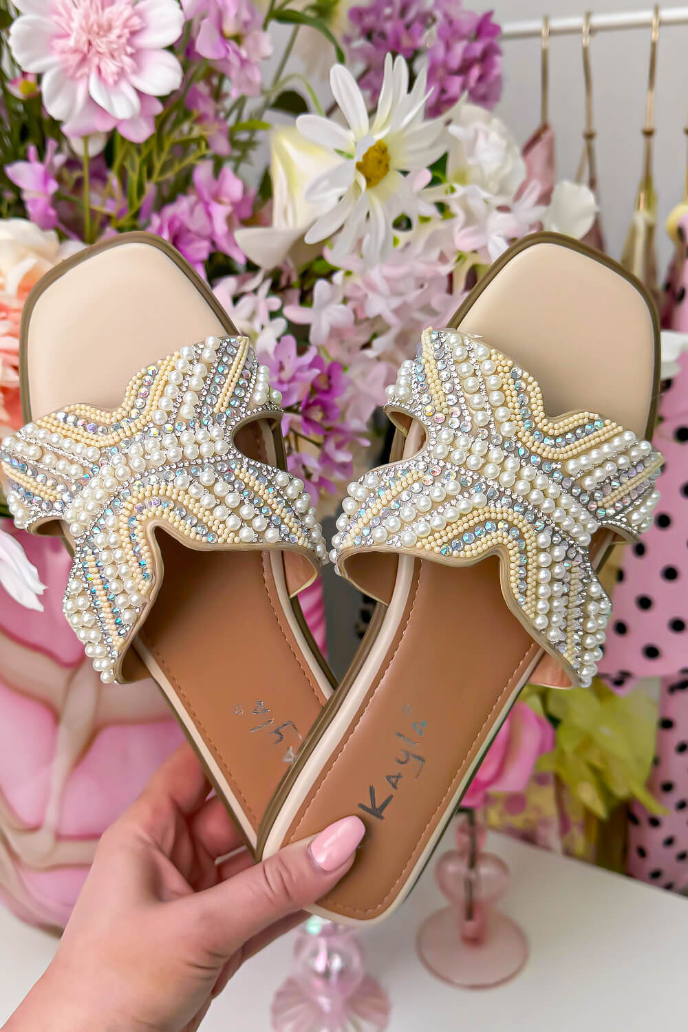 Voeg een vleugje glamour toe aan je look met de Pearl & Diamond Slippers 💎