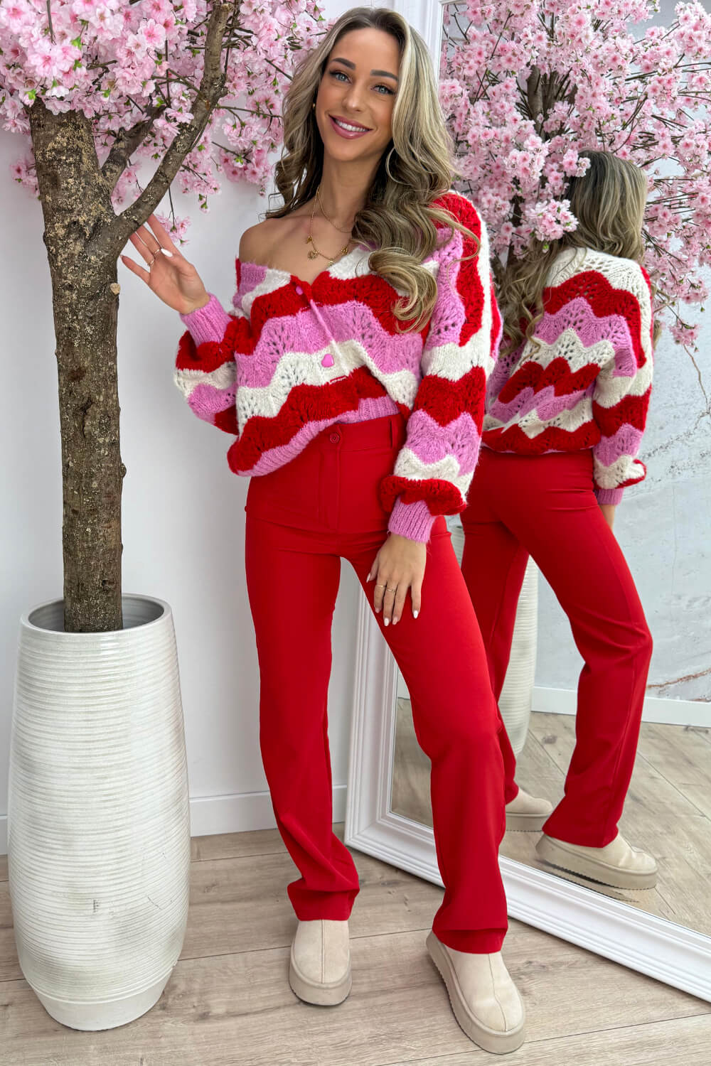 Wauwww! 🤩 Deze cardigan is pure happiness in een look! De rainbow knit vest is een echte eyecatcher dankzij de speelse pastelstrepen en de luchtig knit. Dit is zo'n item waar je meteen blij van wordt zodra je deze aantrekt! 😍 en ja complimenten gegarandeerd! ✨