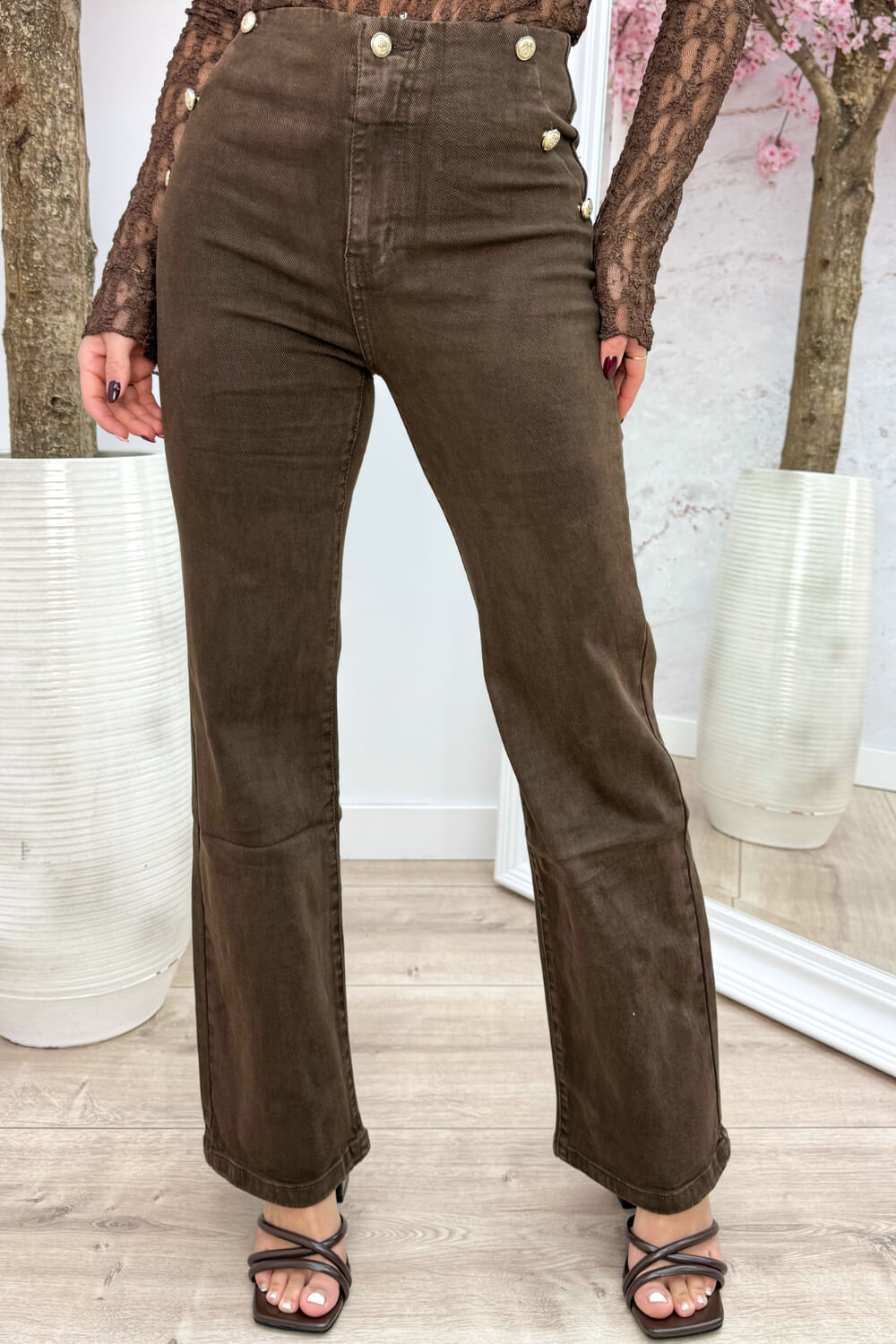 Hij heeft veel stretch (zit dus heerlijk!), prachtige gouden knoopjes aan de voorkant, fijne achterzakken én… het is echt zo’n jeans die je overal bij aantrekt. Comfy sweater? Leuk. Chique blouse? Perfect. Party topje? YES!