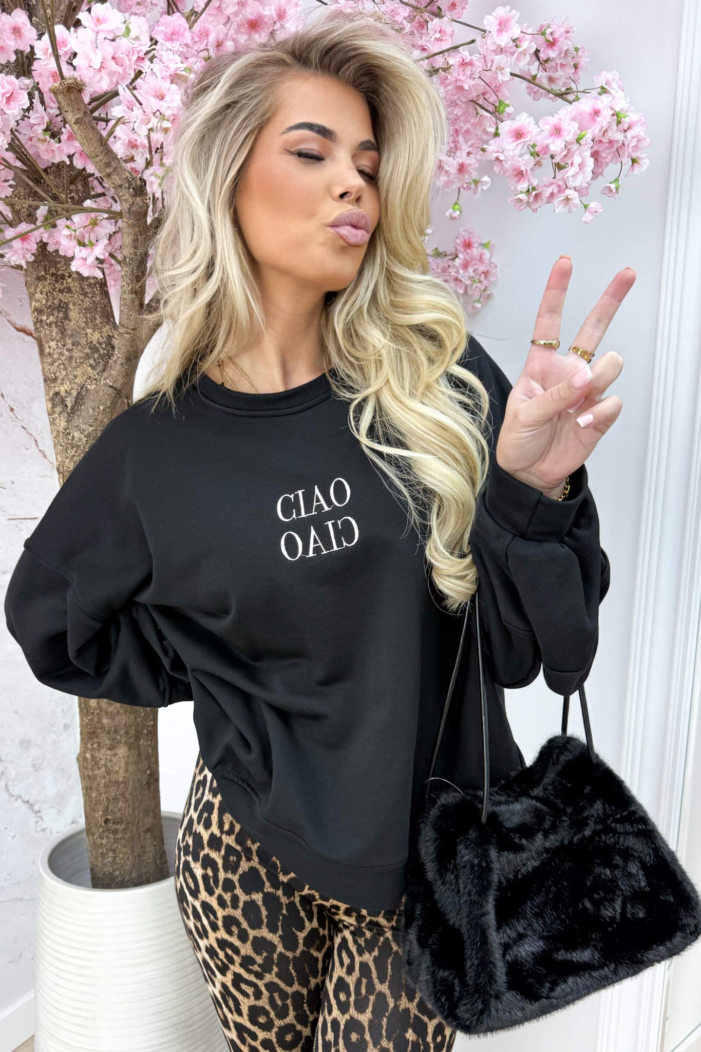 CIAO CIAO VIBES ♡ Zeg hallo tegen je nieuwe go-to sweater! Zacht, comfy en met die leuke opdruk. Easy te combineren voor een relaxte dag thuis, een coffee date of een casual look.