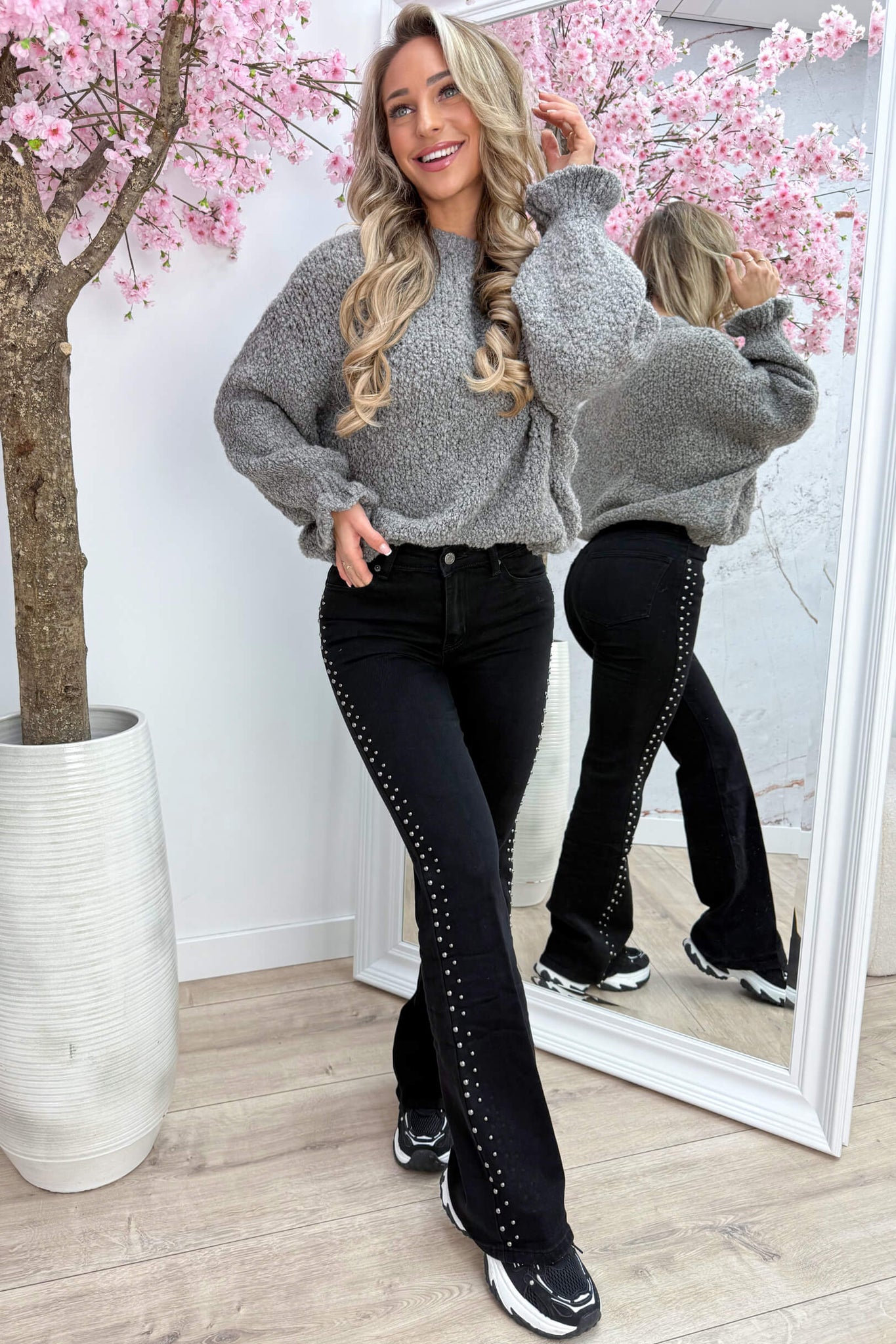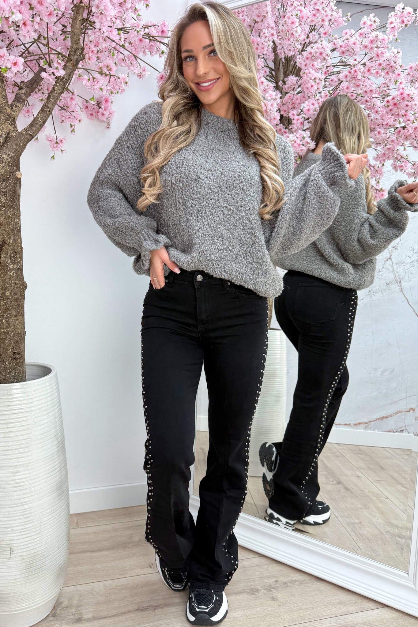De Cuddle Up Ruffle Trui is gemaakt van een mega zachte gebreide stof en die ruffle details? Too cute to handle! 💕
