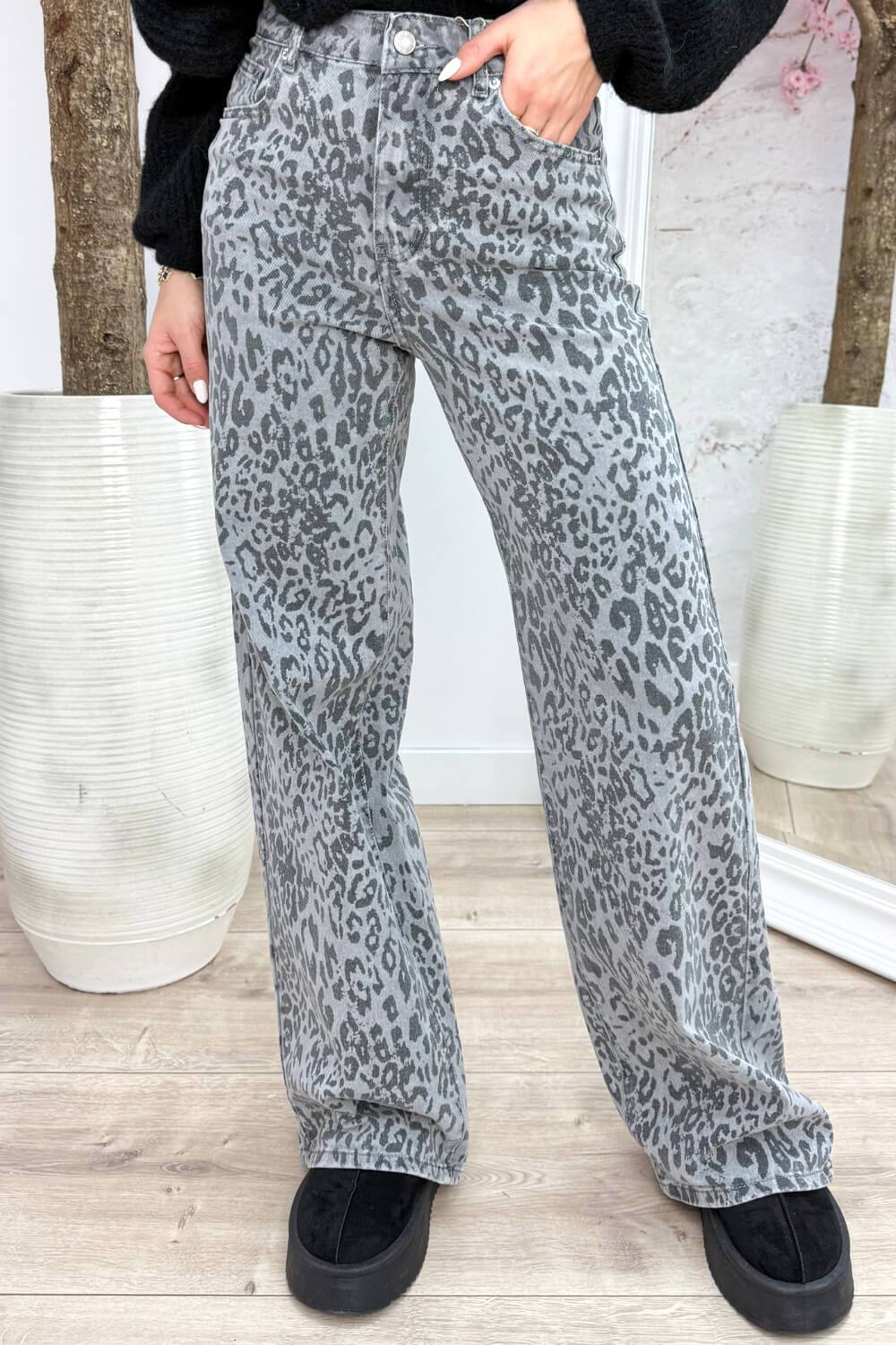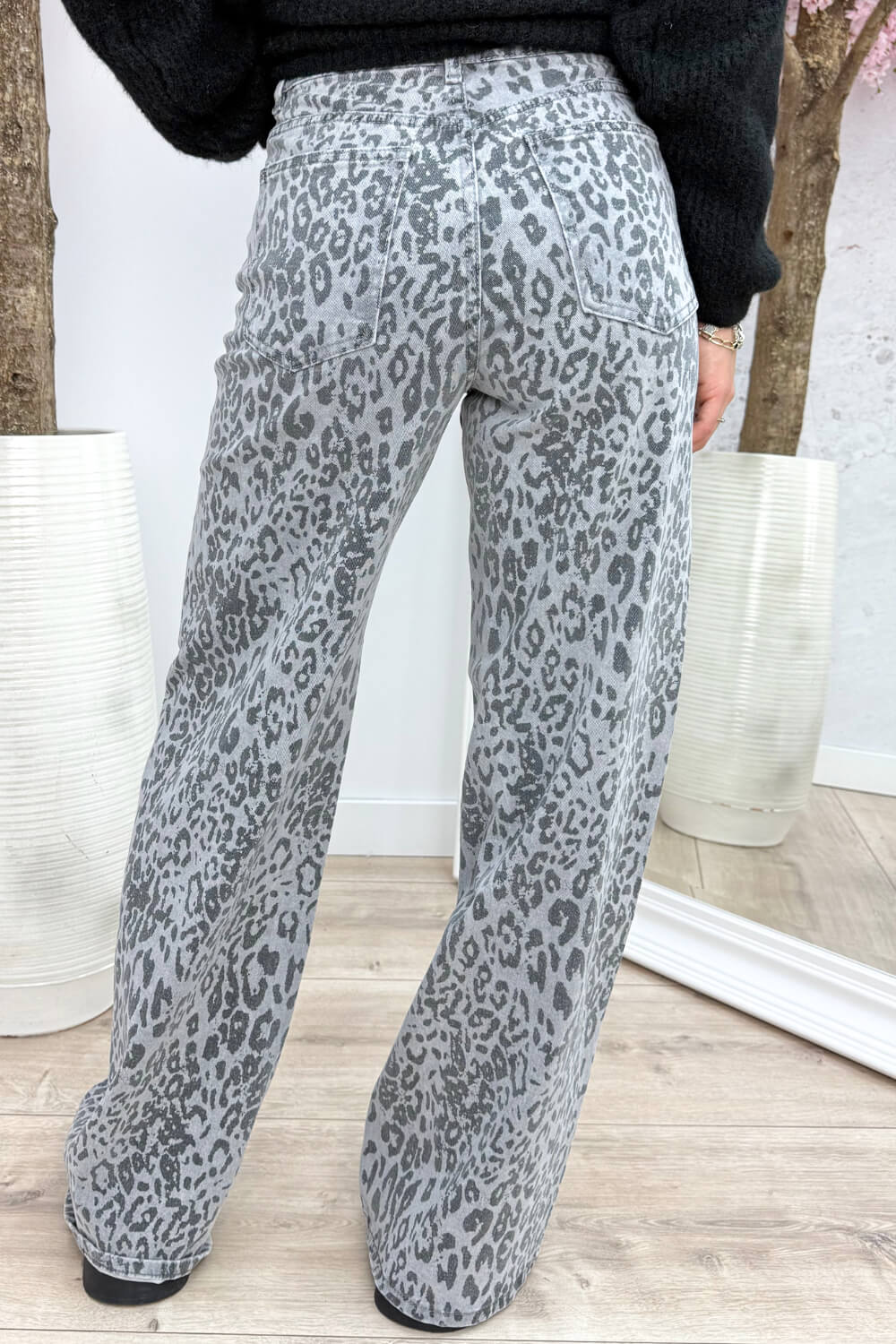 Leopard wide leg jeans Y3366 - Lt. grijs