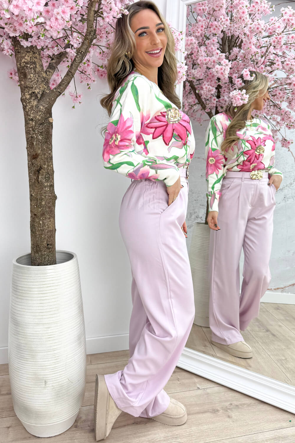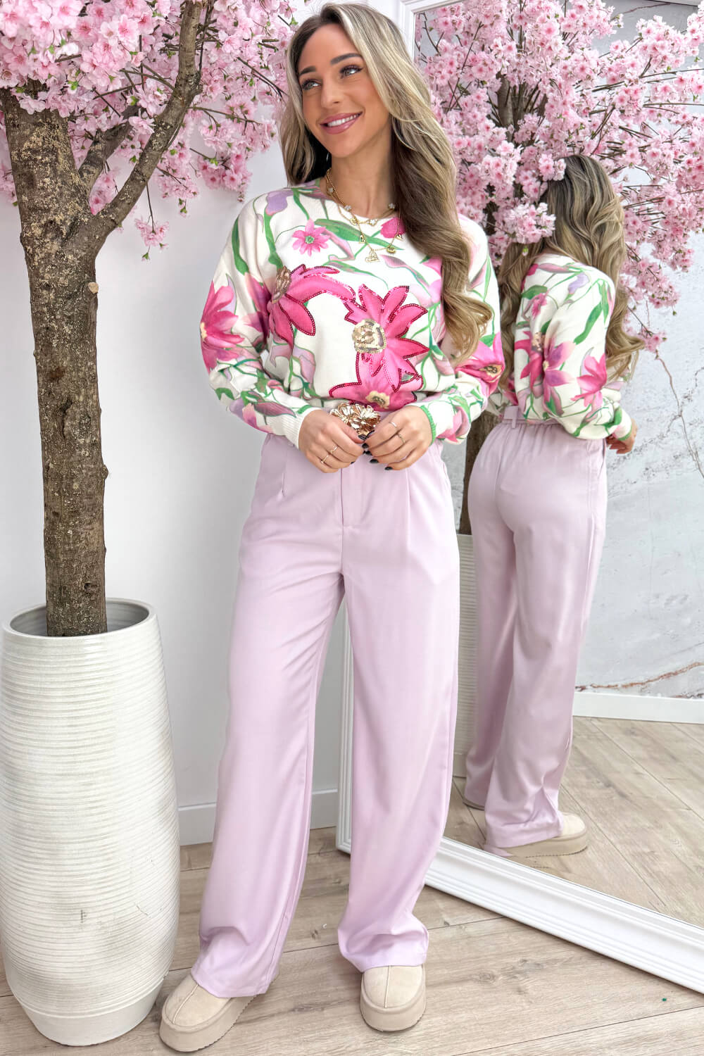LOVE IT! 🌸 Oké stop hoor… hoe mooi is deze trui?! De Sweet Magnolia Paillet Trui is er zo eentje waar je meteen naar blijft kijken. Die grote magnolia print, de pailletdetails… ja hoor, dit is gewoon een eyecatcher.