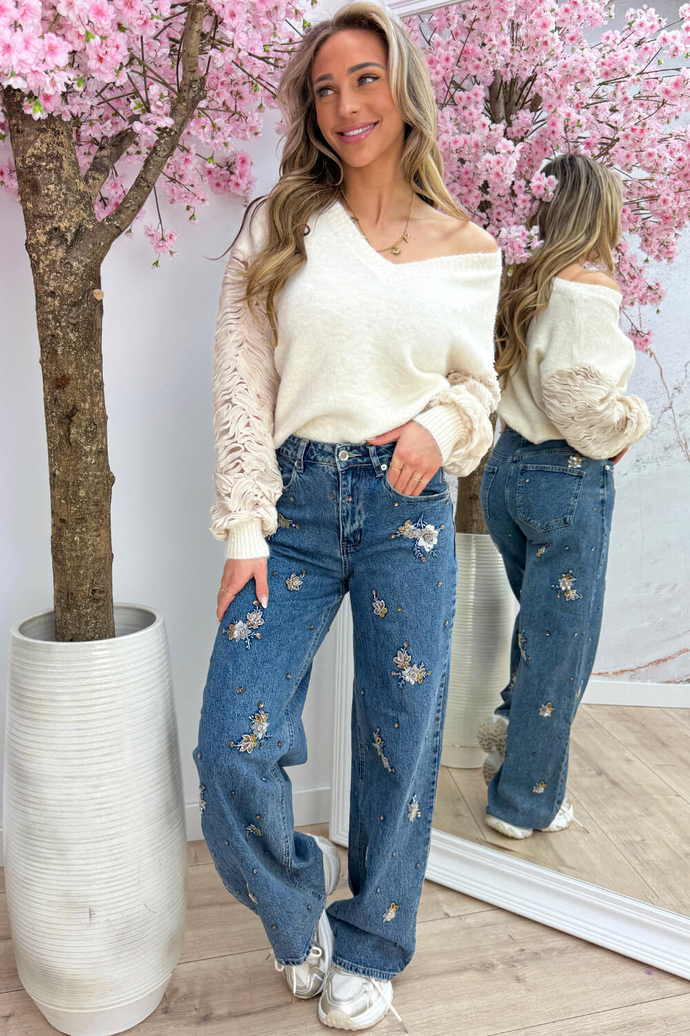 WRAPPED IN MAGIC! ✨ Okeeee… even serieus, deze trui is me-ga zacht en hij kriebelt niet — dus yes, comfy level: 100%! 😍 Maar het leukste? Die mouwen… oh-my, wij zijn verliefd en jij gaat dat ook zijn. Echt zo’n detail waar je steeds naar blijft kijken! 💖
