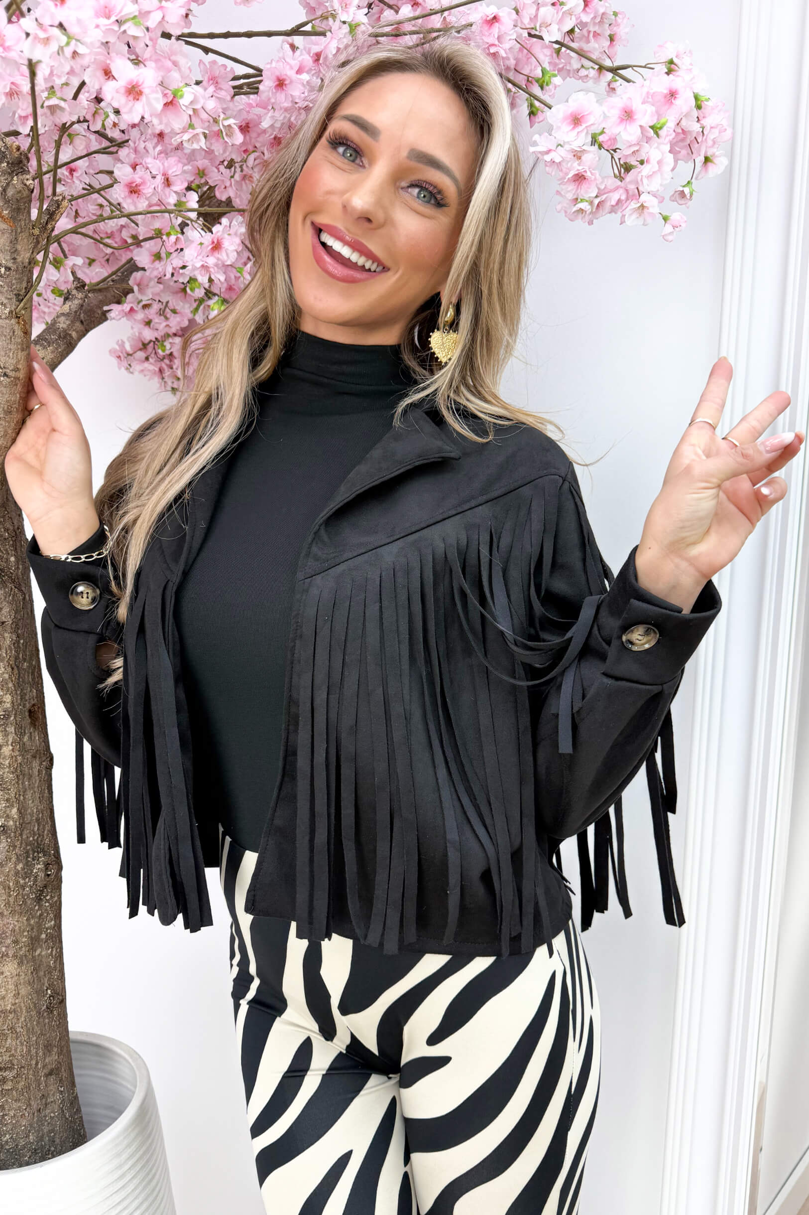 WESTERN VIBES ✨ Stoer, comfy én met stretchy fit, het Yeehaw Fringe Jacket is ready voor city strolls, weekend adventures of night out vibes. 🤍